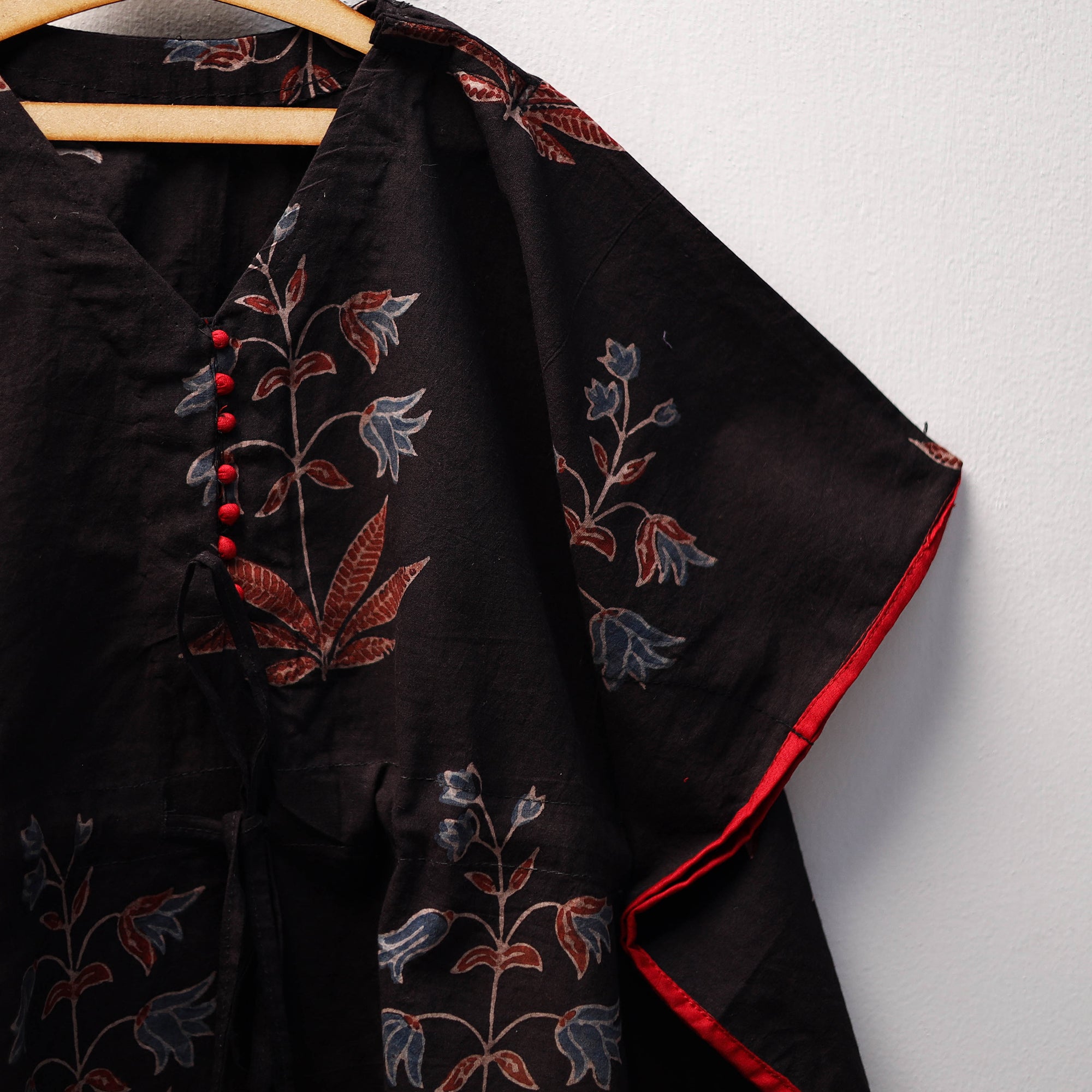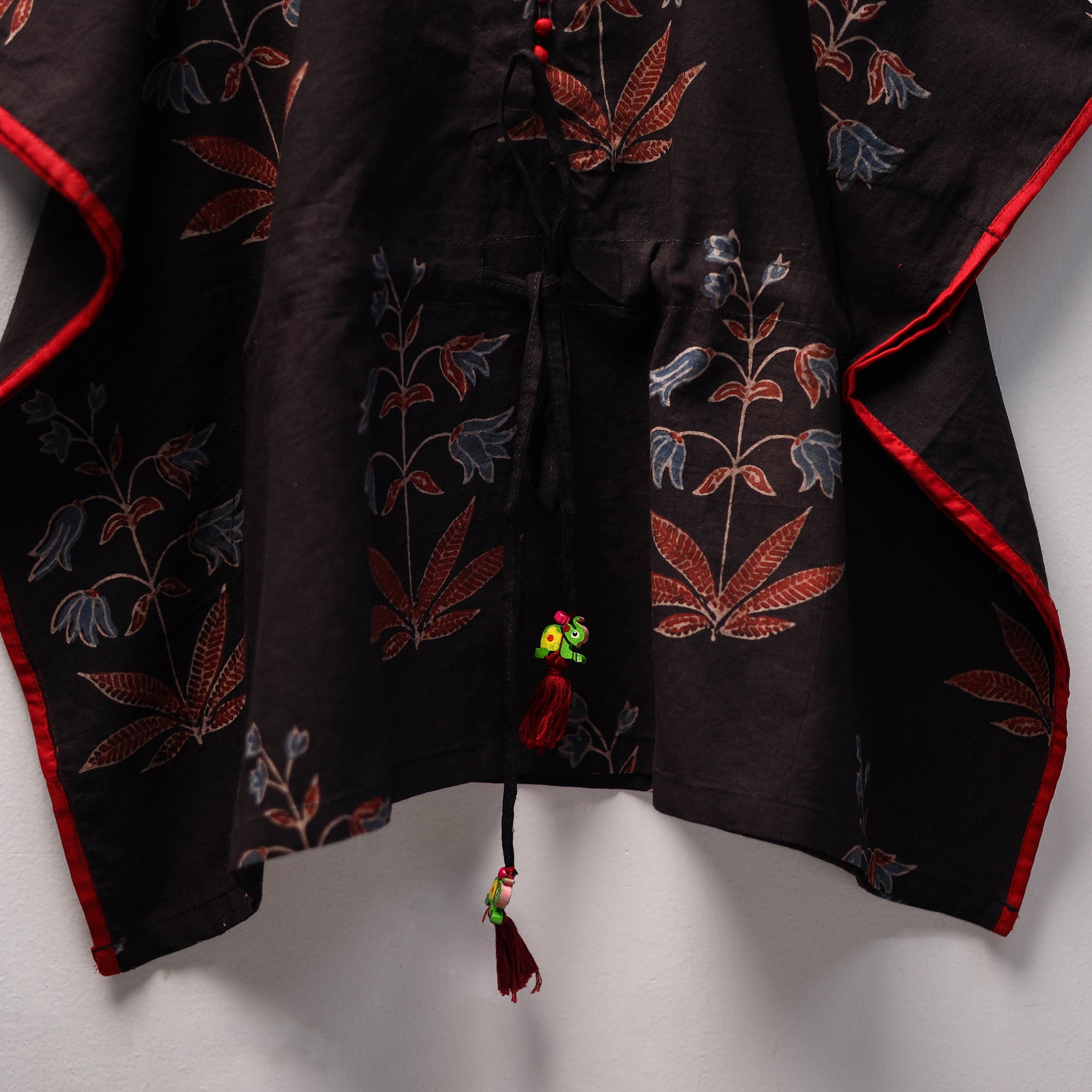 | Material | Discover our delightful collection of black ajrakh block-printed cotton kaftans for kids, crafted to blend comfort, style, and a touch of tradition in your child’s wardrobe. Made from soft, breathable cotton, these kaftans are lightweight and gentle on the skin, ensuring all-day comfort. Featuring a relaxed fit and an adjustable drawstring adorned with tassels, they offer ease of movement and a flexible fit that grows with your little one. |