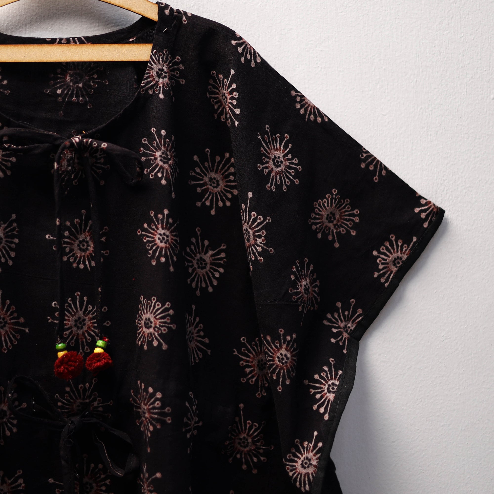 Discover our delightful collection of black ajrakh block-printed cotton kaftans for kids, crafted to blend comfort, style, and a touch of tradition in your child’s wardrobe. Made from soft, breathable cotton, these kaftans are lightweight and gentle on the skin, ensuring all-day comfort. Featuring a relaxed fit and an adjustable drawstring adorned with tassels, they offer ease of movement and a flexible fit that grows with your little one.