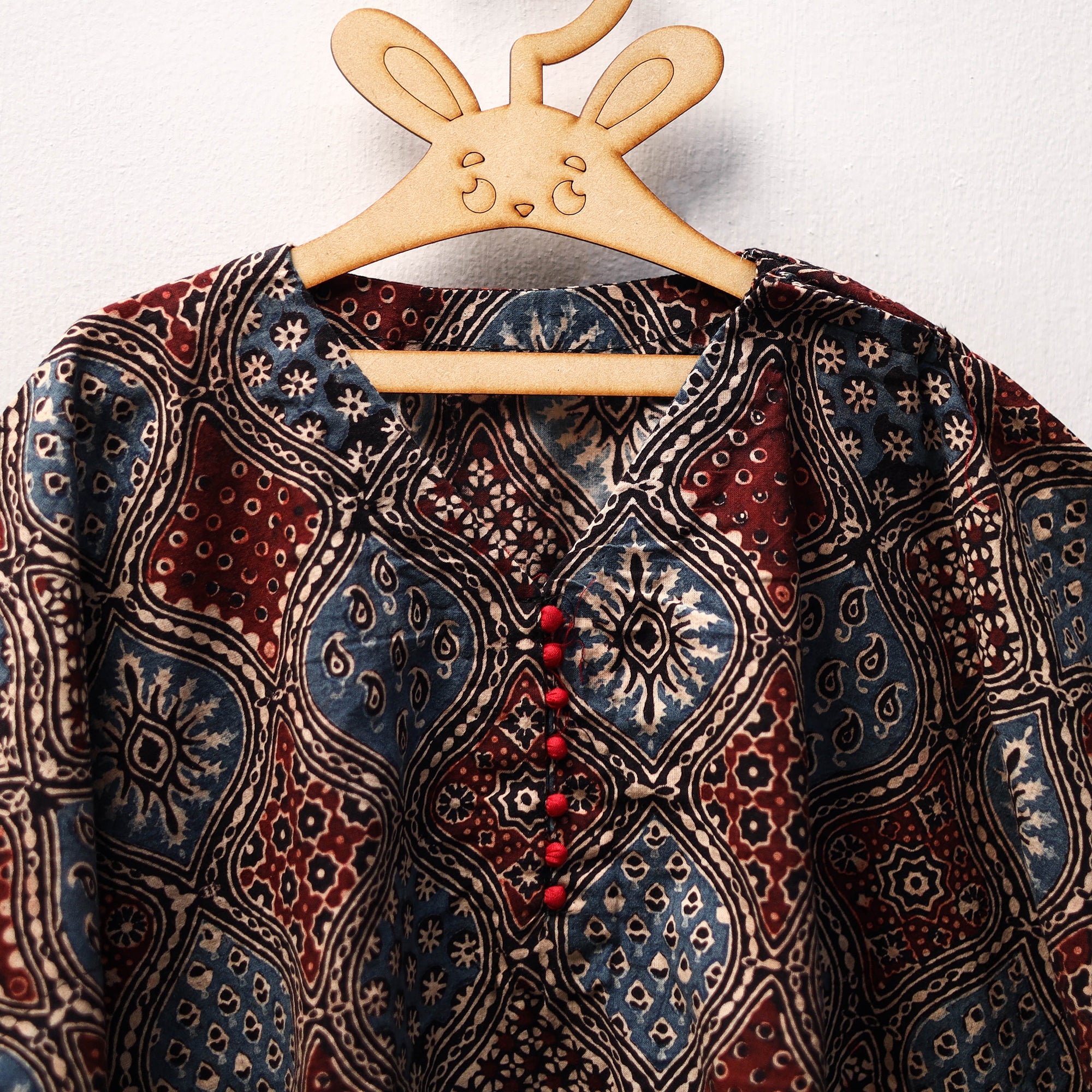 Blue - Ajrakh Block Print Cotton Kids Kaftan (3-4 Years) 28