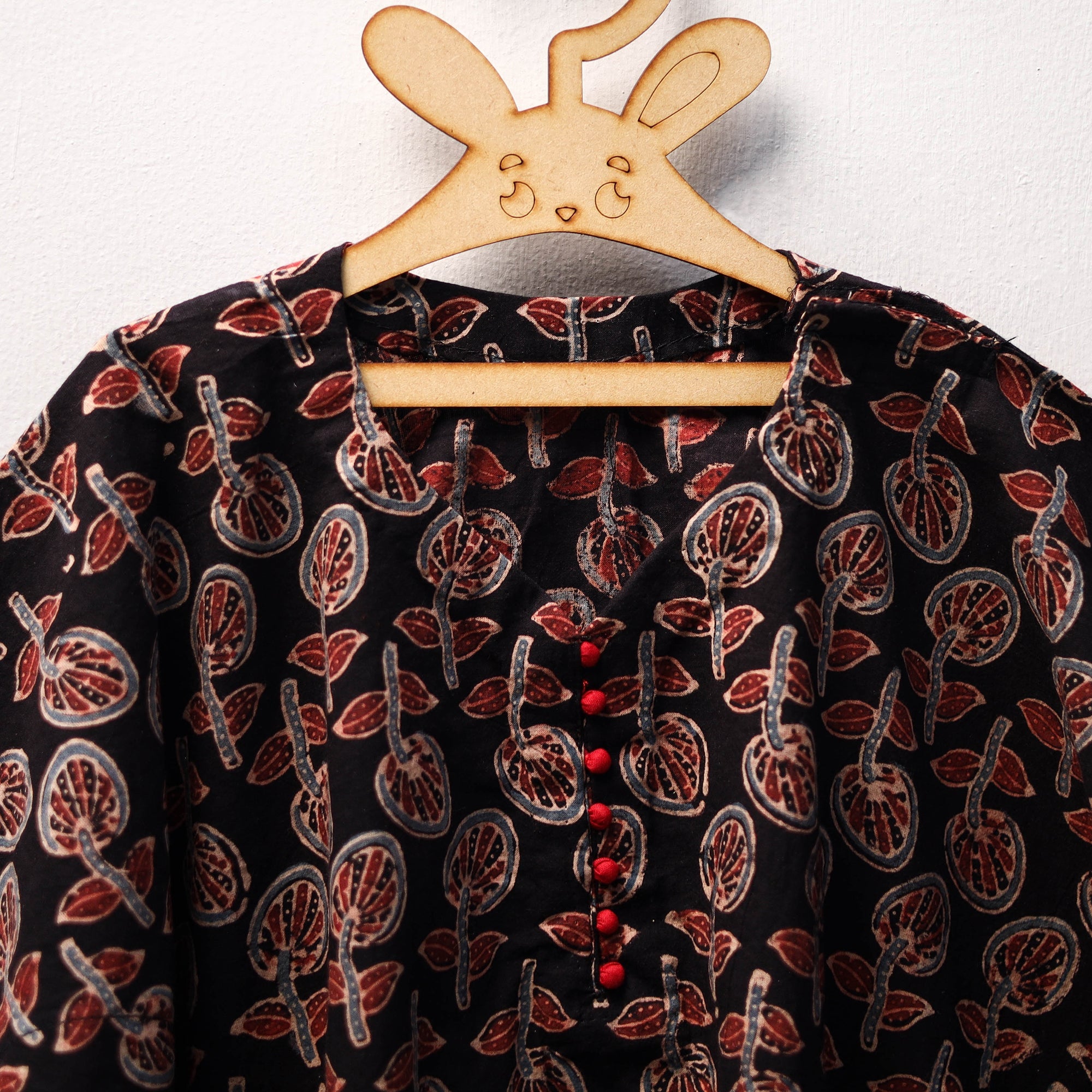 Black - Ajrakh Block Print Cotton Kids Kaftan (3-4 Years) 29