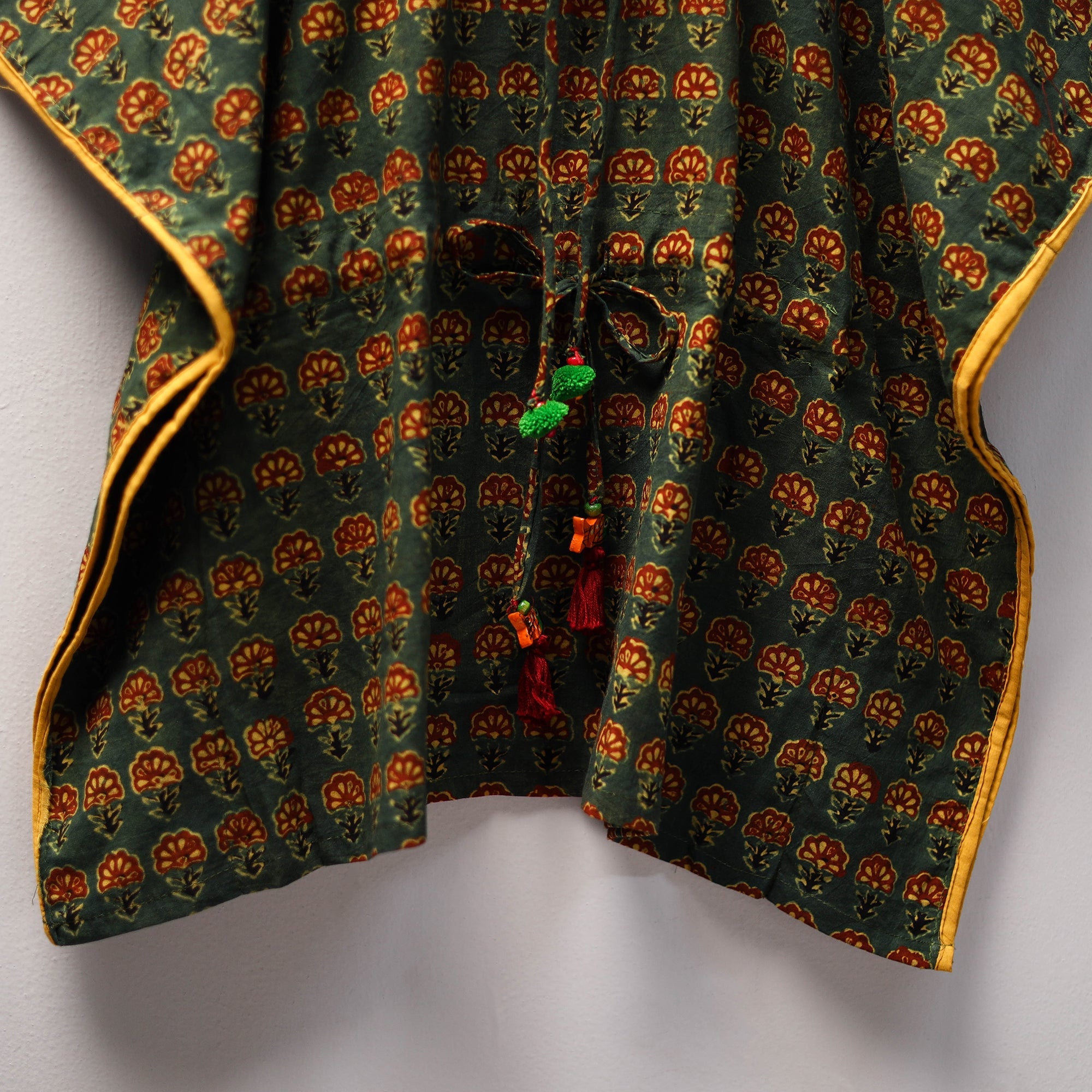 Discover our delightful collection of green ajrakh block-printed cotton kaftans for kids, crafted to blend comfort, style, and a touch of tradition in your child’s wardrobe. Made from soft, breathable cotton, these kaftans are lightweight and gentle on the skin, ensuring all-day comfort. Featuring a relaxed fit and an adjustable drawstring adorned with tassels, they offer ease of movement and a flexible fit that grows with your little one.