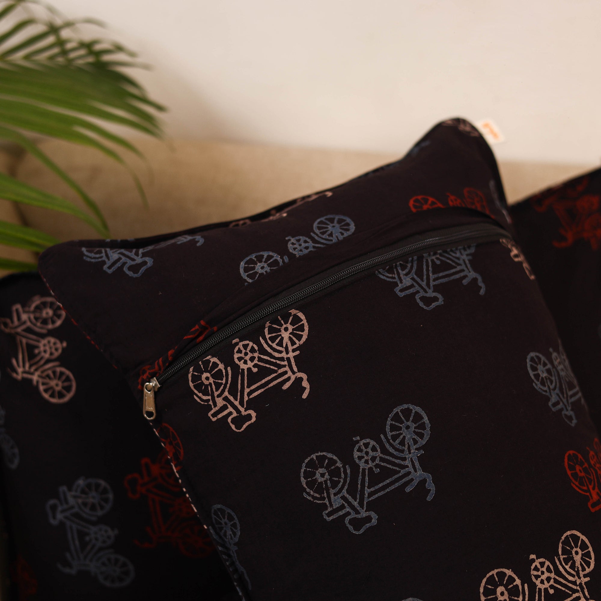 Black - Ajrakh Block Print Cotton Pillow Covers (Set of 2) 39