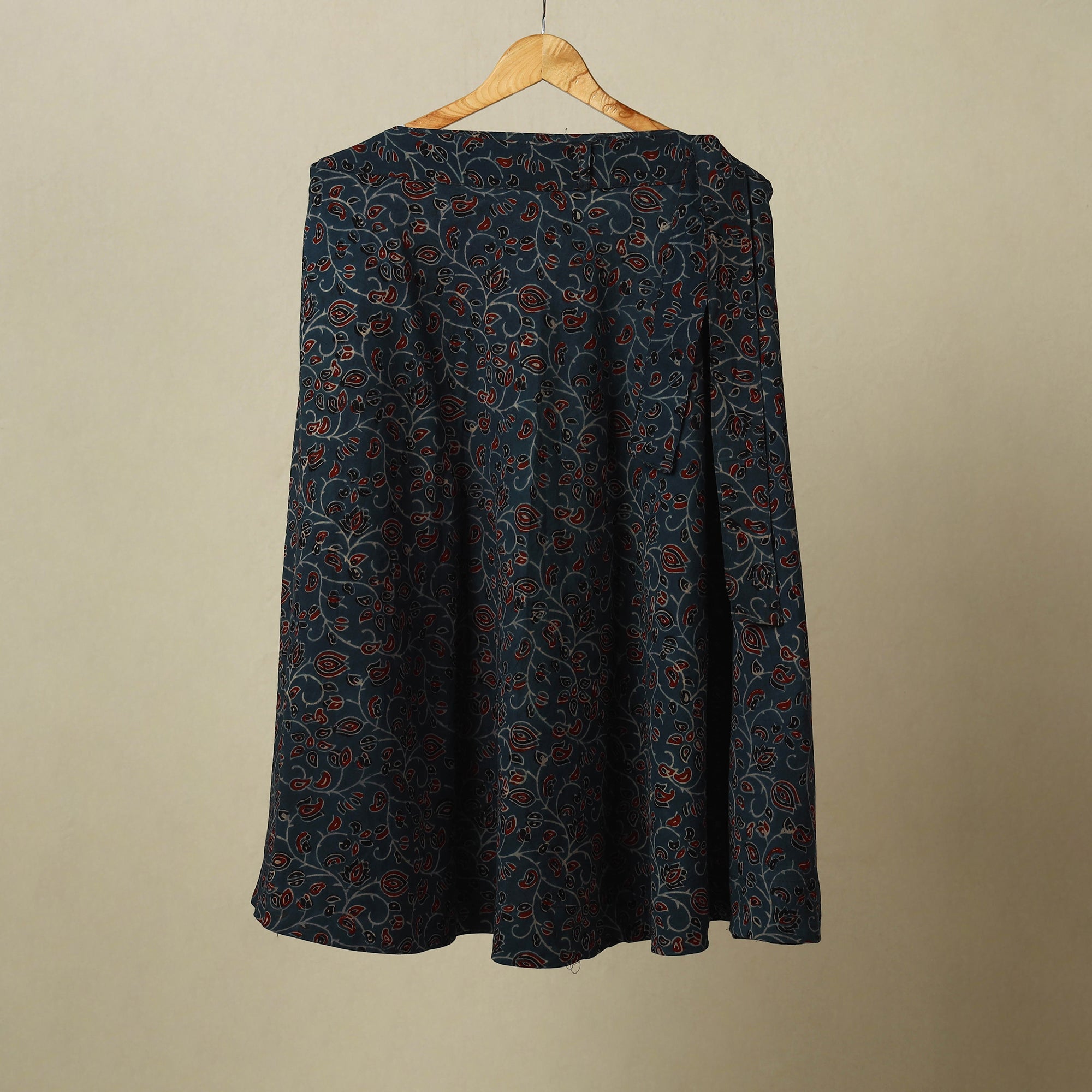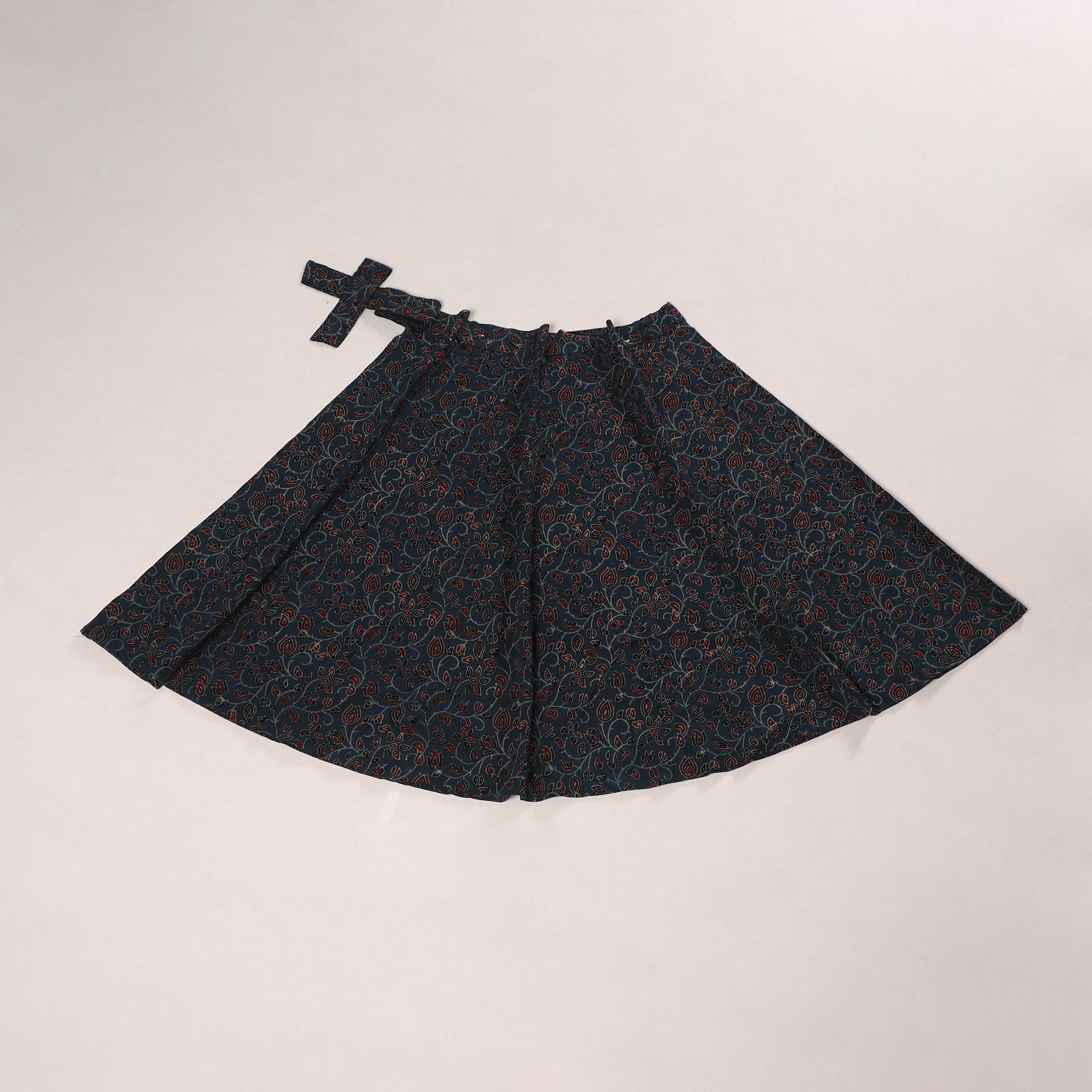 Bring a touch of tradition to your style with this blue ajrakh print cotton wrap skirt. The adjustable tie-up waist ensures ease and comfort. Featuring with detailed block-printed ajrakh patterns in earthy colors, it’s suited for daily wear, holidays, casual events, or festive occasions.