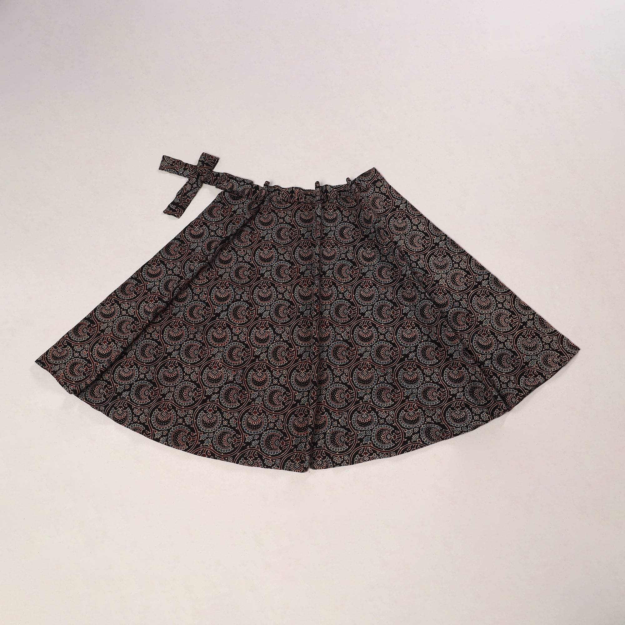 Bring a touch of tradition to your style with this black ajrakh print cotton wrap skirt. The adjustable tie-up waist ensures ease and comfort. Featuring with detailed block-printed ajrakh patterns in earthy colors, it’s suited for daily wear, holidays, casual events, or festive occasions.