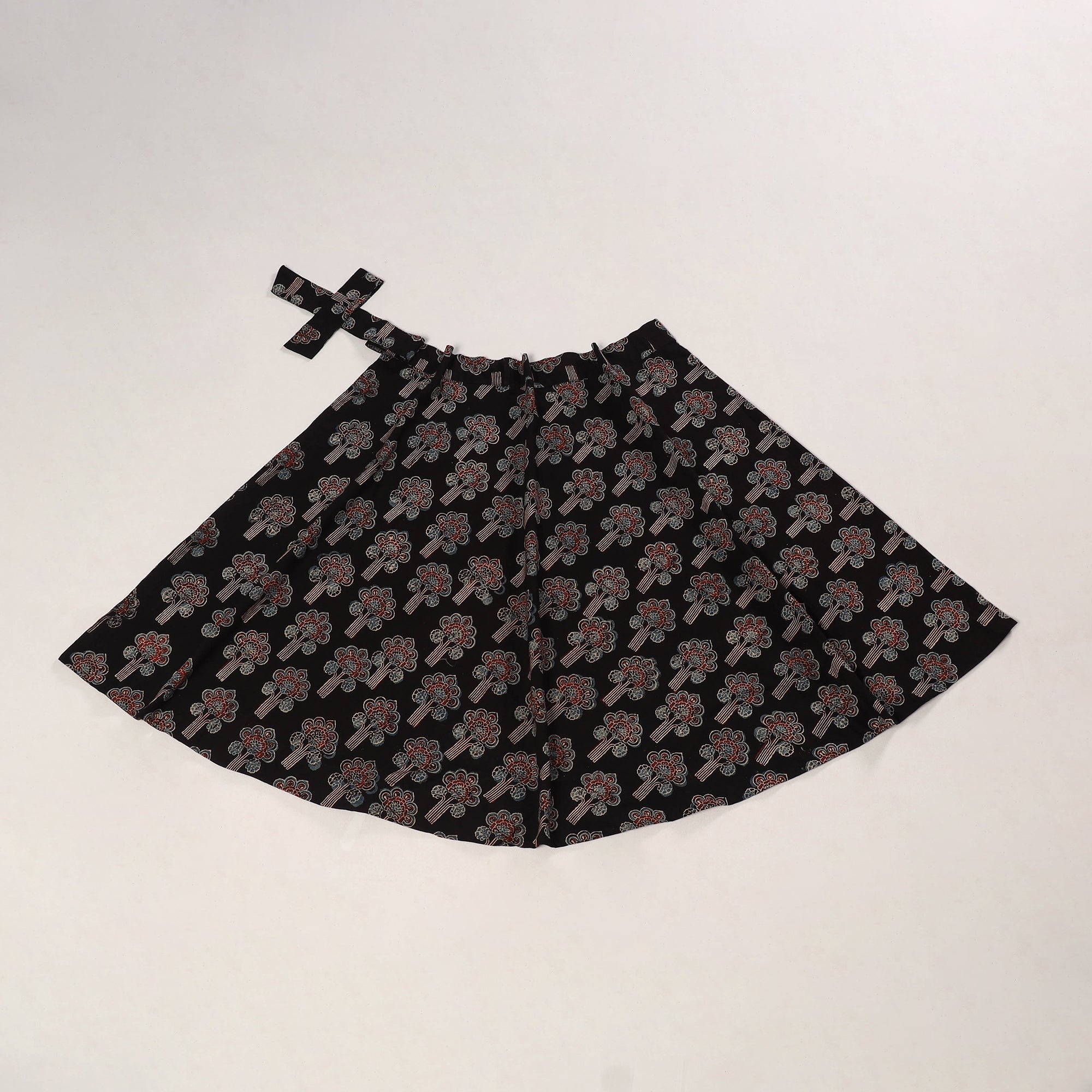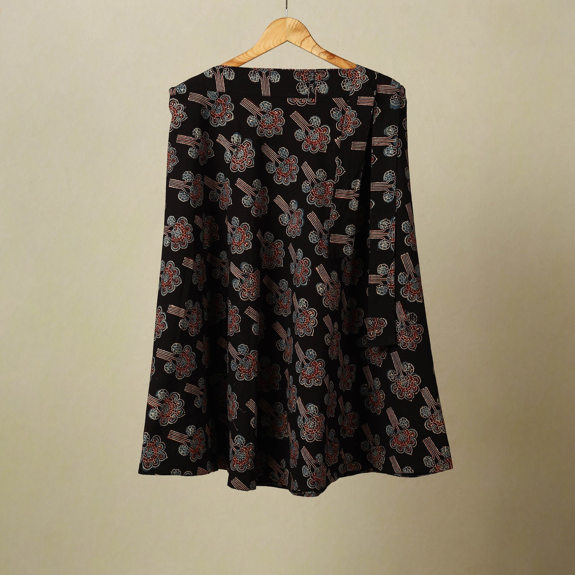 | Material | Bring a touch of tradition to your style with this black natural dyed ajrakh print cotton wrap skirt. The adjustable tie-up waist ensures ease and comfort. Featuring with detailed block-printed ajrakh patterns in earthy colors, it’s suited for daily wear, holidays, casual events, or festive occasions. |
