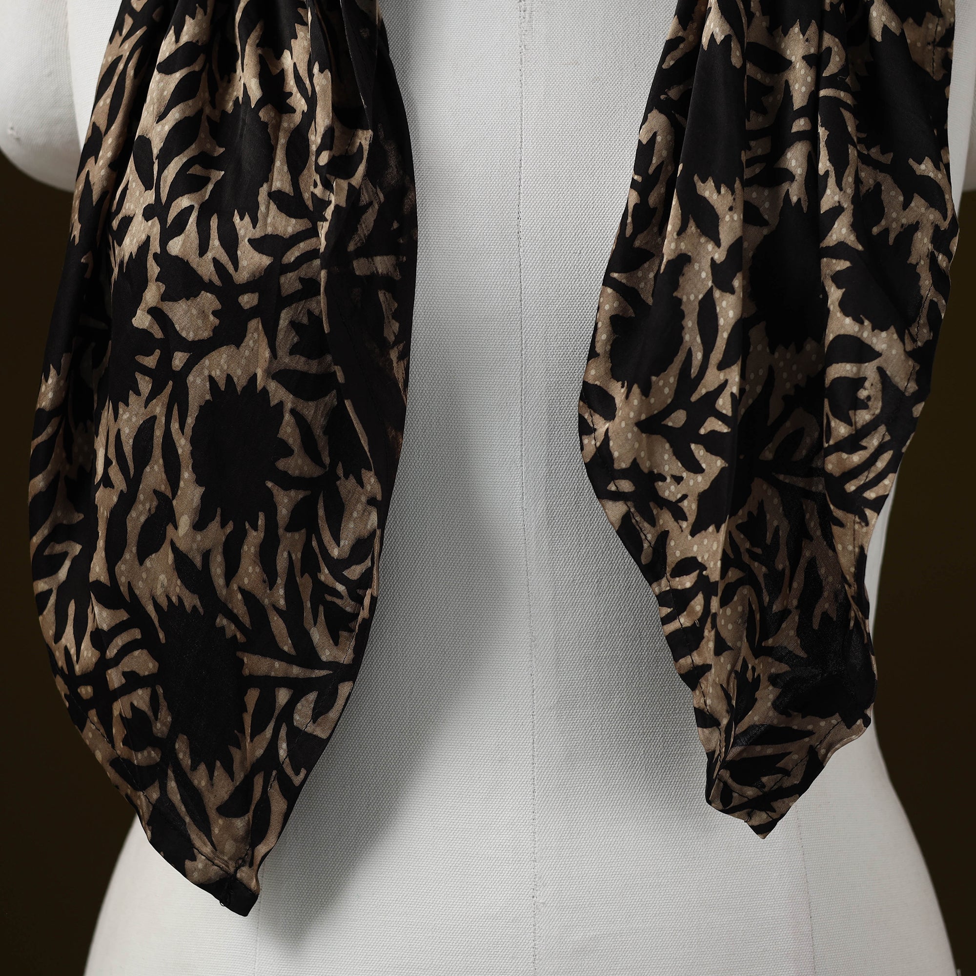 | Material | Black ajrakh block print german silver brooch scarf is a versatile accessory designed for effortless styling. Soft and comfortable to wear, it features detailed block-printed motifs that add a distinctive touch. Made using modal silk, the scarf offers a balanced feel with a subtle sheen and a comfortable drape, making it suitable for everyday as well as occasion wear. |