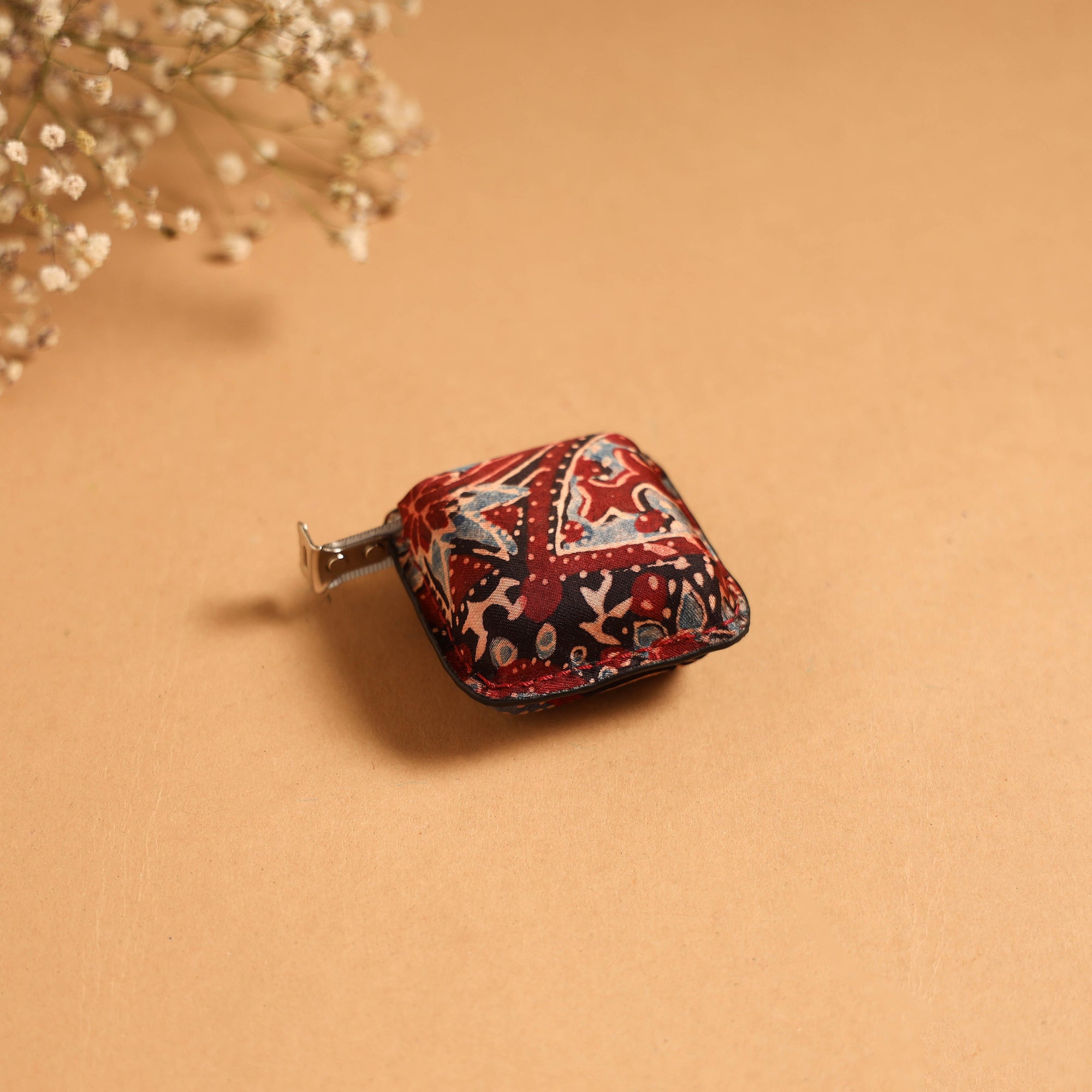 Multipurpose measuring tape features a ajrakh block printed cotton fabric cover, adding a touch of tradition to a practical essential. Crafted with a durable iron tin sheet and clear ruler markings, it ensures accurate measurements and long-lasting use. Perfect for interior designers, architects and everyday projects.