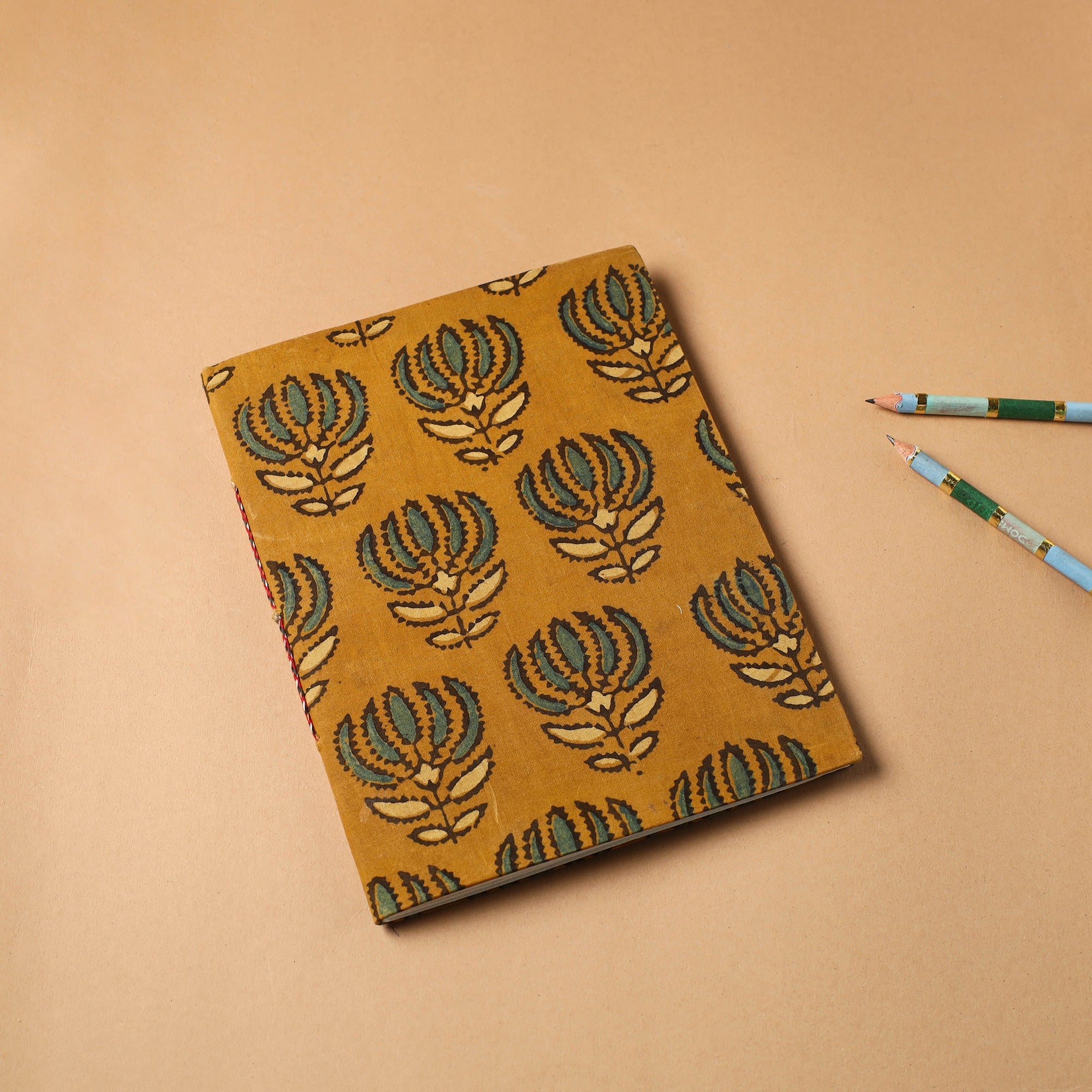 | Material | This handmade paper notebook features a hardbound yellow ajrakh block-printed cotton fabric cover and is bound using traditional bookbinding techniques. The pages are crafted from recycled cotton and natural fibers, offering a sustainable and smooth writing surface. It's ideal for journaling, creative writing, or gifting. |