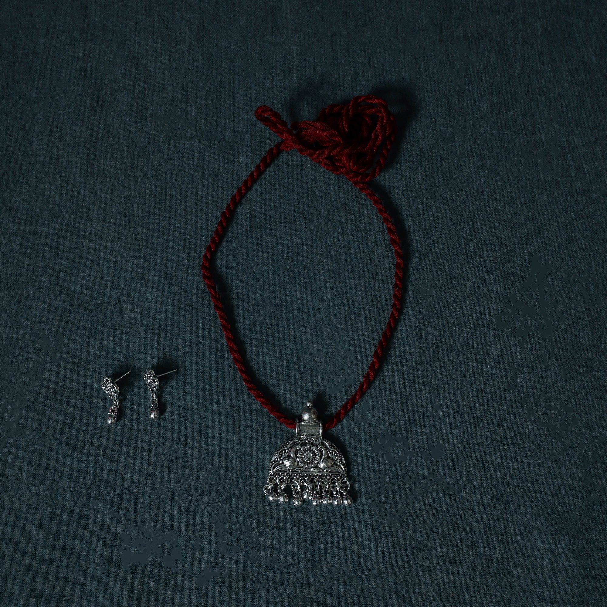 Necklace : Length - 60 cm, Width - 2 cm, Pendant : Length - 4 cm, Width - 3 cm, (adjustable, drawstring closure). Earrings : Length - 1 cm, Width - 0.5 cm.