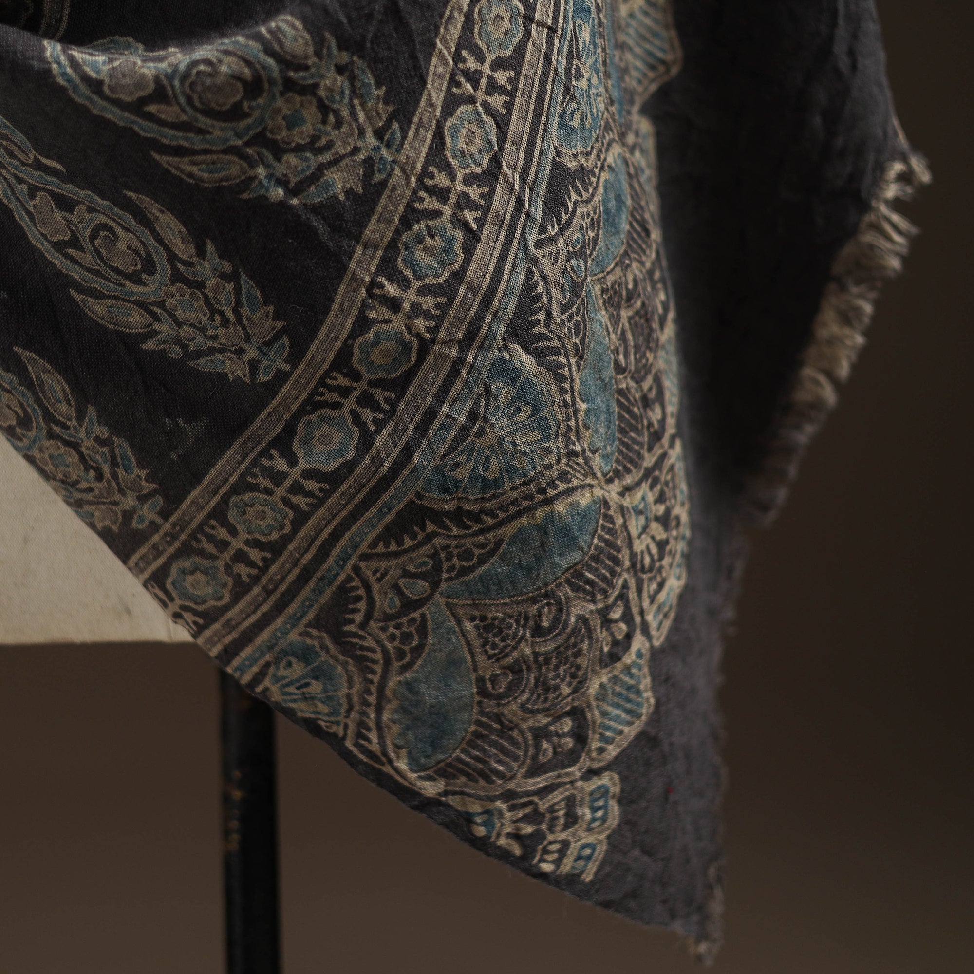 Ajrakh Hand Block Print Natural Dyed Handwoven Acrylic Wool Shawl 03