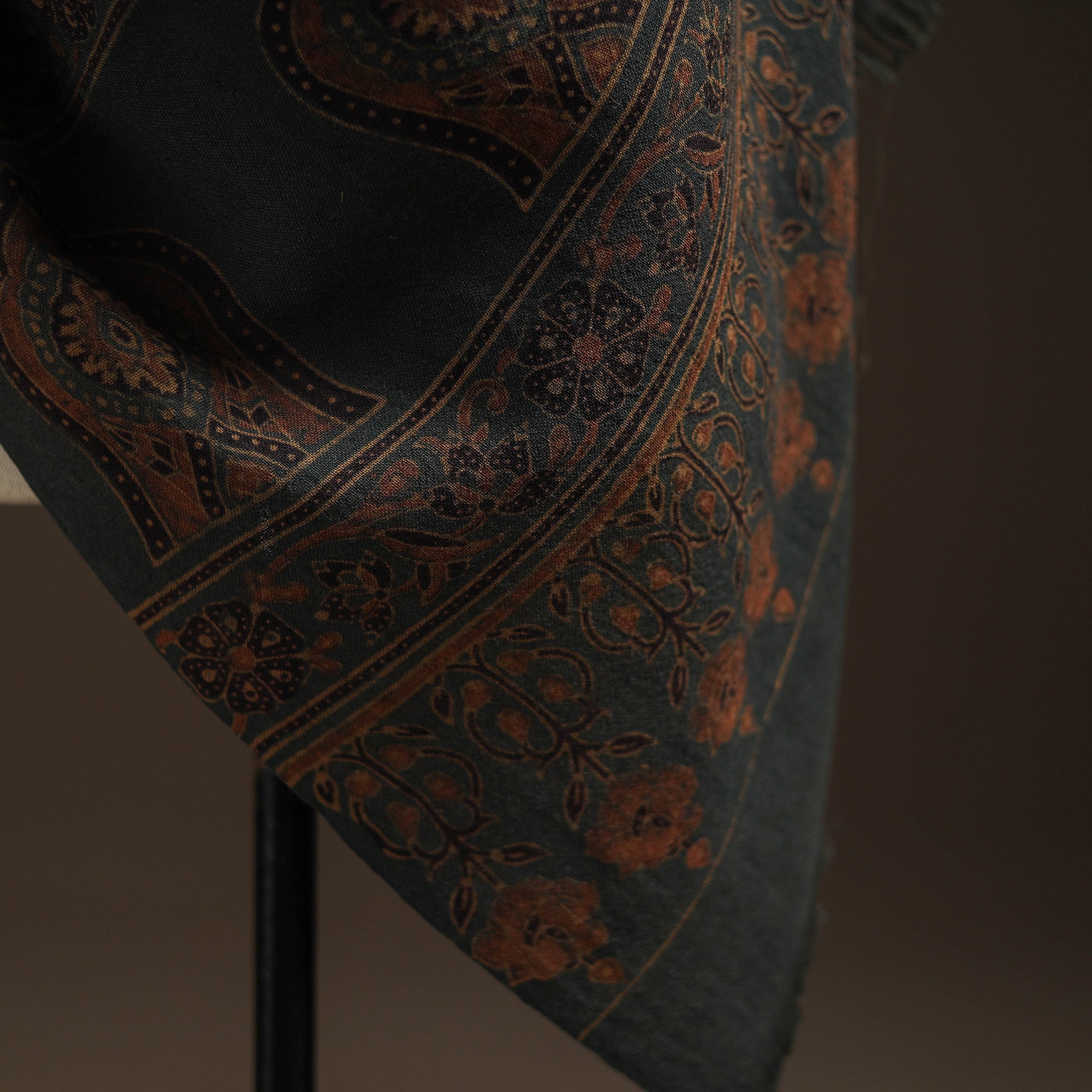 Ajrakh traditional hand block print acrylic wool shawl is created using long-practiced dyeing and printing techniques from Kutch, Gujarat. Designed for the winter season, the wool offers consistent warmth while remaining comfortable for everyday wear. The intricate Ajrakh patterns bring a refined, understated elegance, making it a thoughtful choice for those who appreciate culturally rooted textiles in their winter wardrobe.
