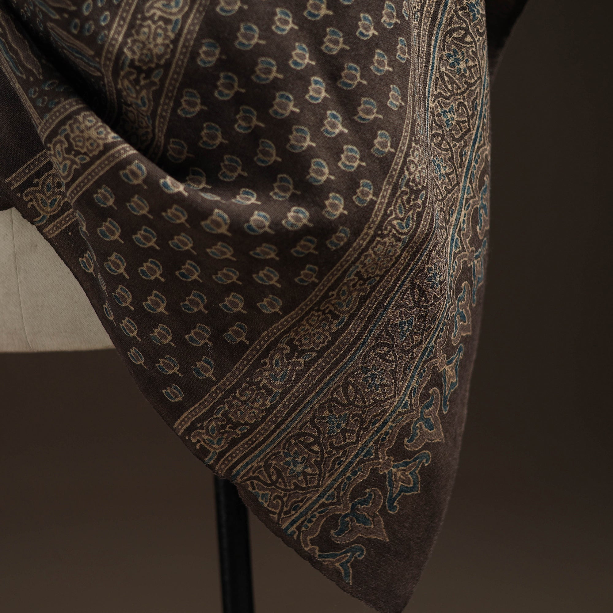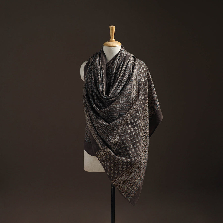 Ajrakh traditional hand block print acrylic wool shawl is created using long-practiced dyeing and printing techniques from Kutch, Gujarat. Designed for the winter season, the wool offers consistent warmth while remaining comfortable for everyday wear. The intricate Ajrakh patterns bring a refined, understated elegance, making it a thoughtful choice for those who appreciate culturally rooted textiles in their winter wardrobe.