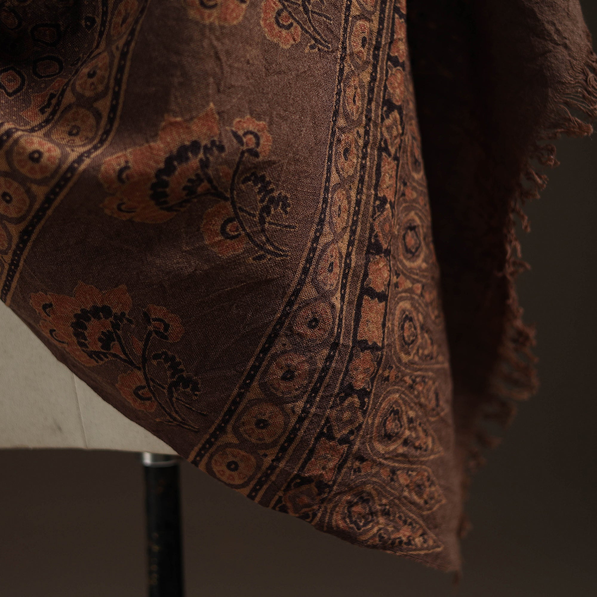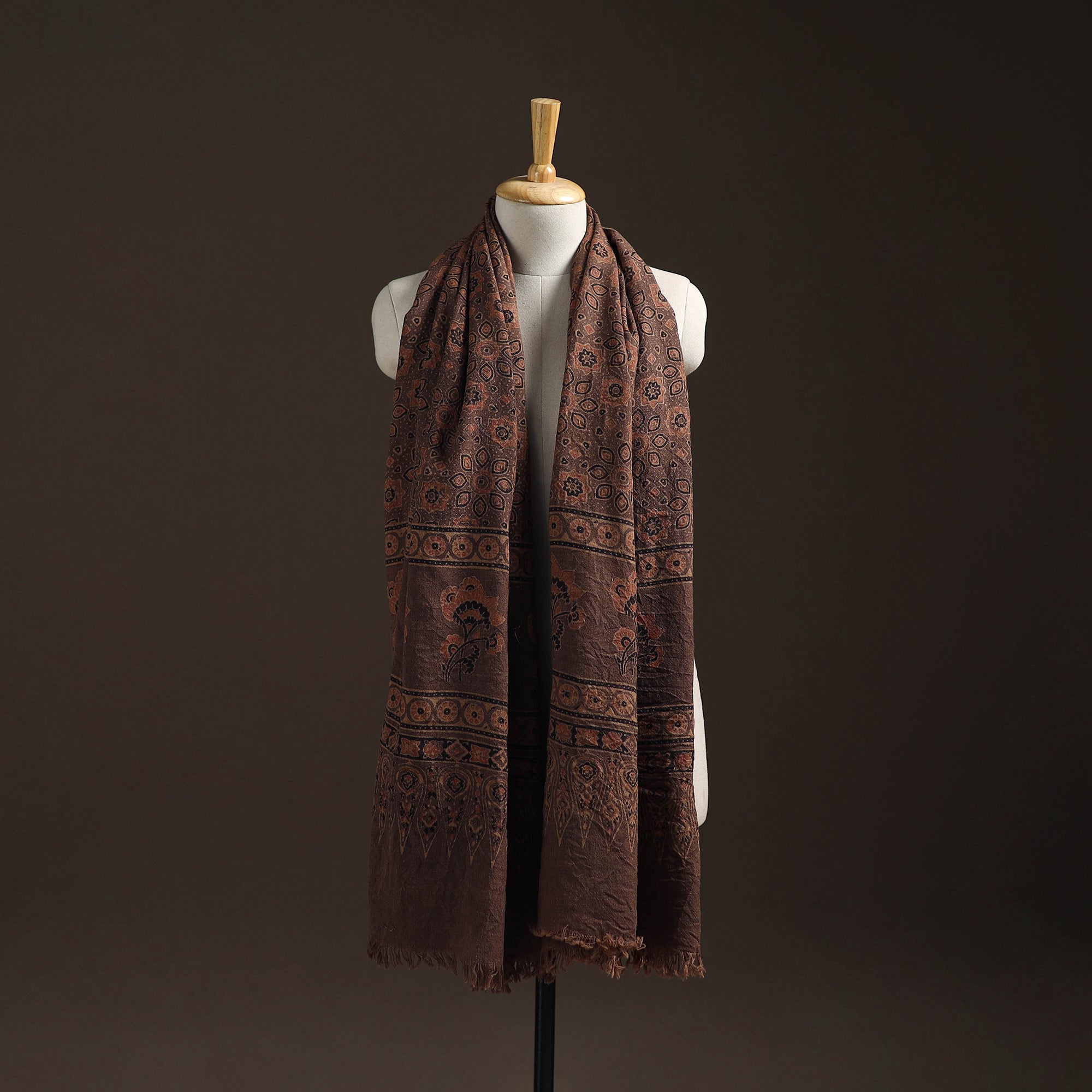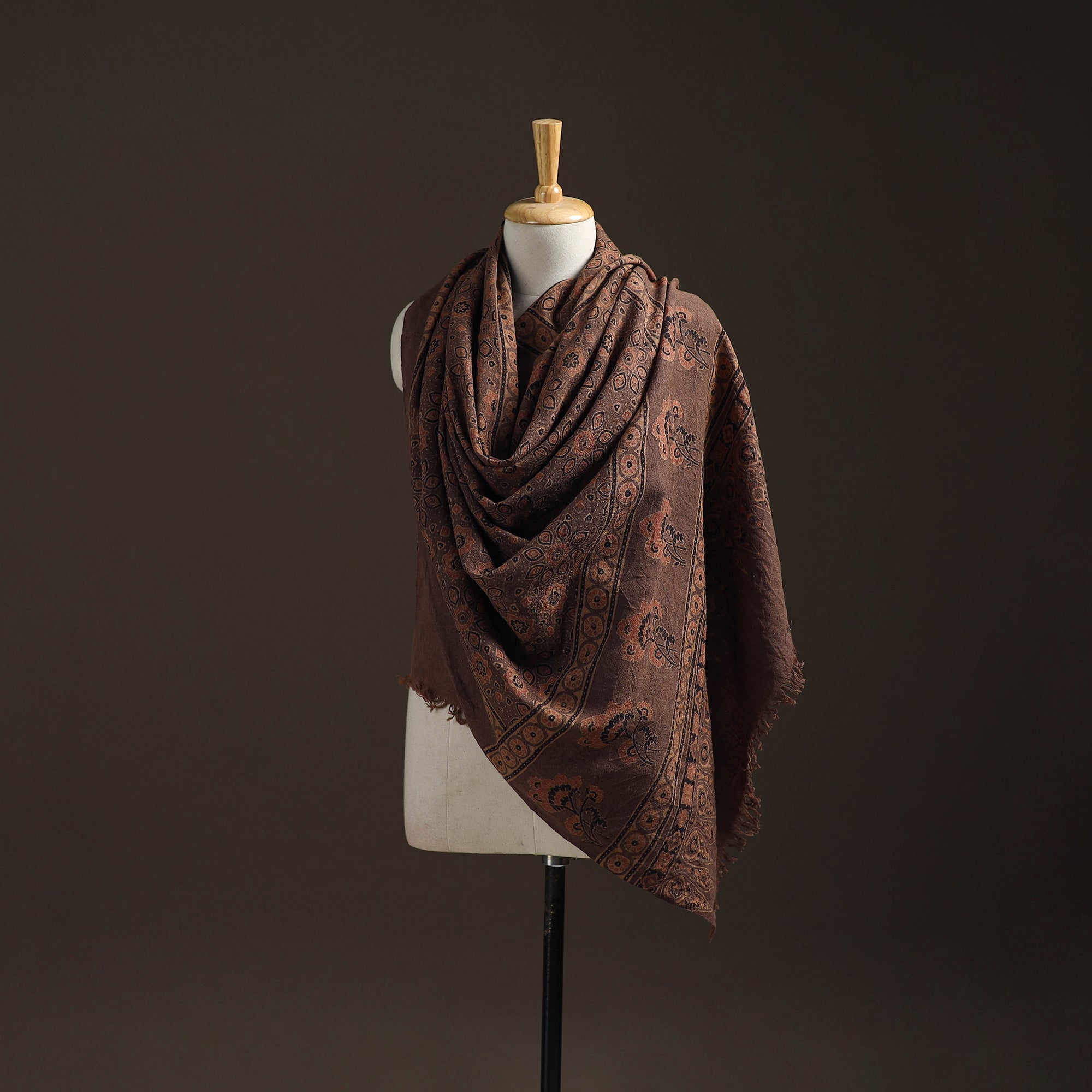 Ajrakh traditional hand block print acrylic wool shawl is created using long-practiced dyeing and printing techniques from Kutch, Gujarat. Designed for the winter season, the wool offers consistent warmth while remaining comfortable for everyday wear. The intricate Ajrakh patterns bring a refined, understated elegance, making it a thoughtful choice for those who appreciate culturally rooted textiles in their winter wardrobe.