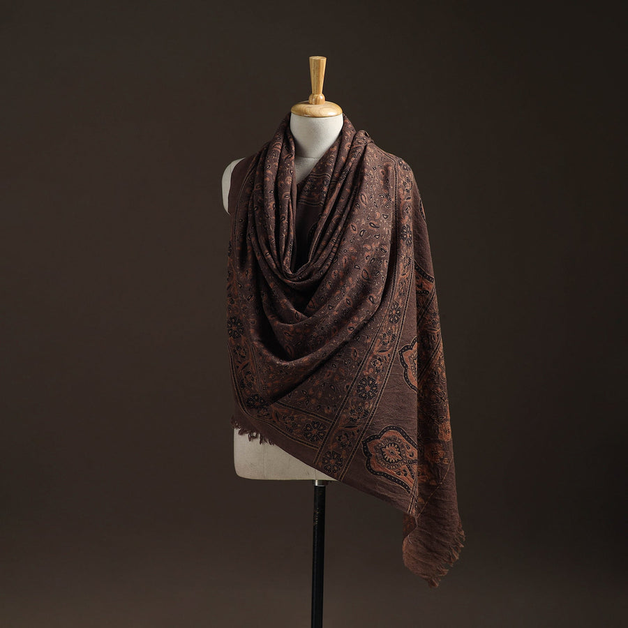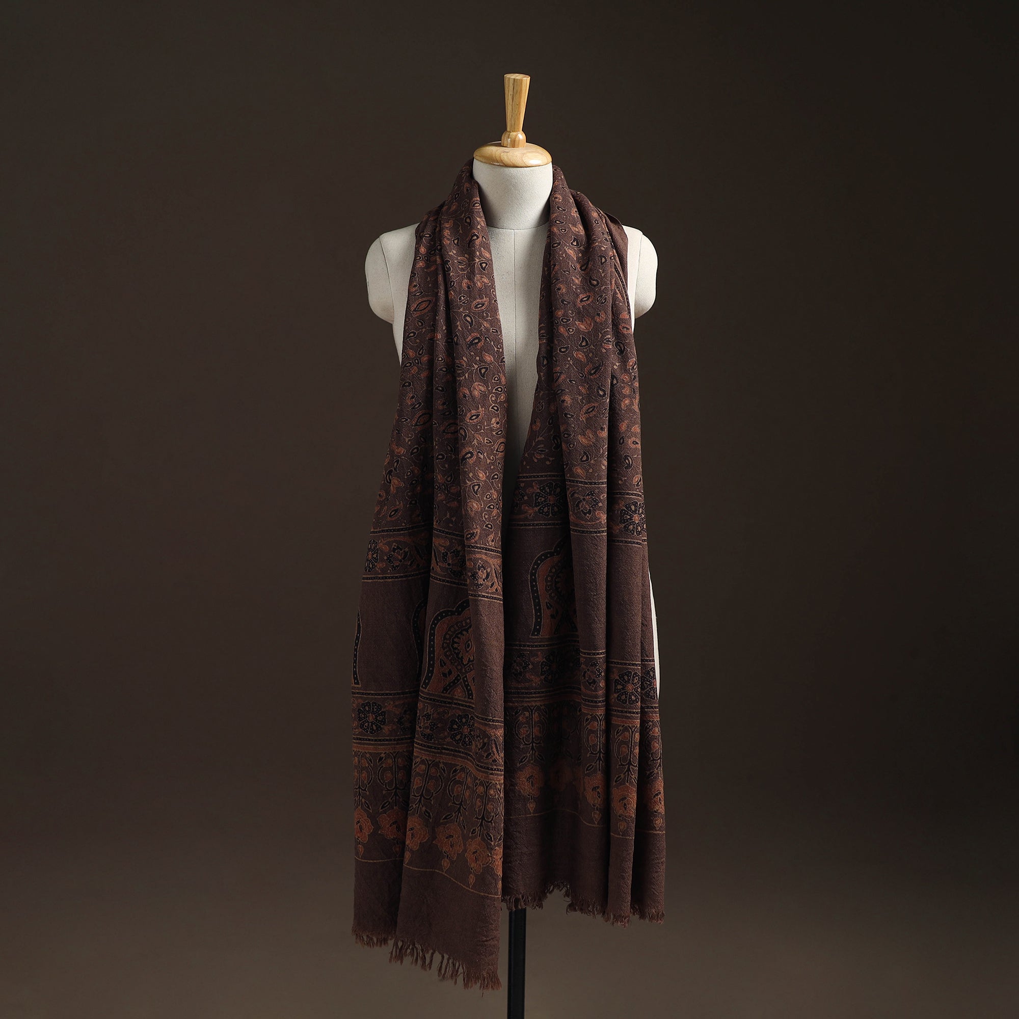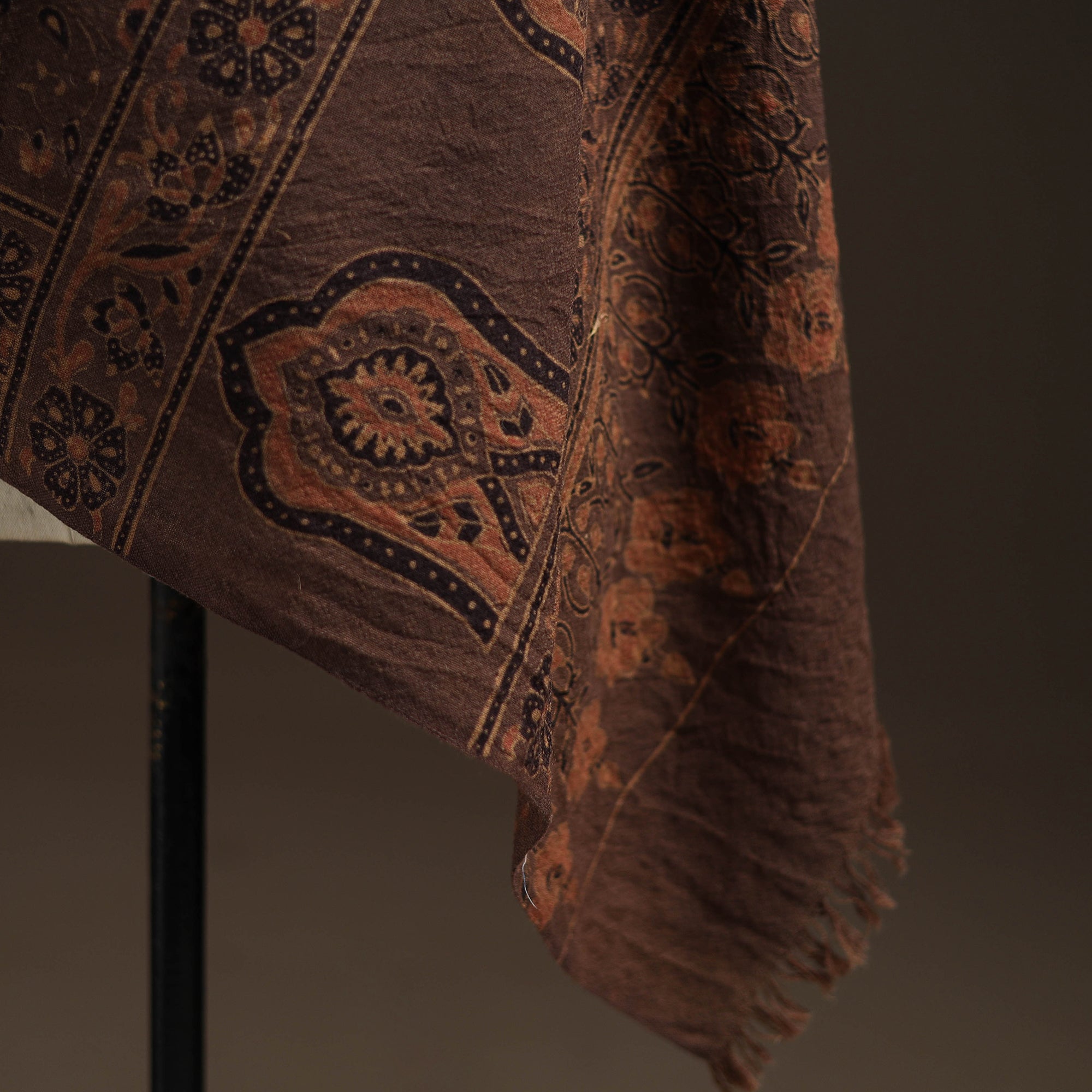 Ajrakh traditional hand block print acrylic wool shawl is created using long-practiced dyeing and printing techniques from Kutch, Gujarat. Designed for the winter season, the wool offers consistent warmth while remaining comfortable for everyday wear. The intricate Ajrakh patterns bring a refined, understated elegance, making it a thoughtful choice for those who appreciate culturally rooted textiles in their winter wardrobe.