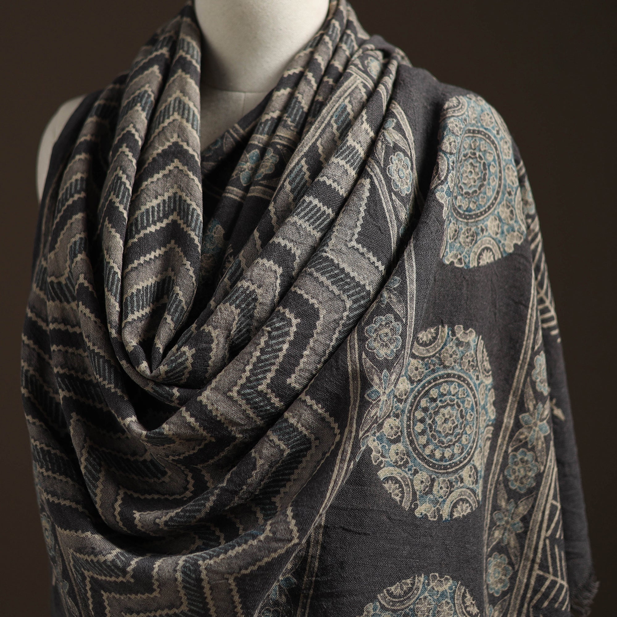 Ajrakh Hand Block Print Natural Dyed Handwoven Acrylic Wool Shawl 17