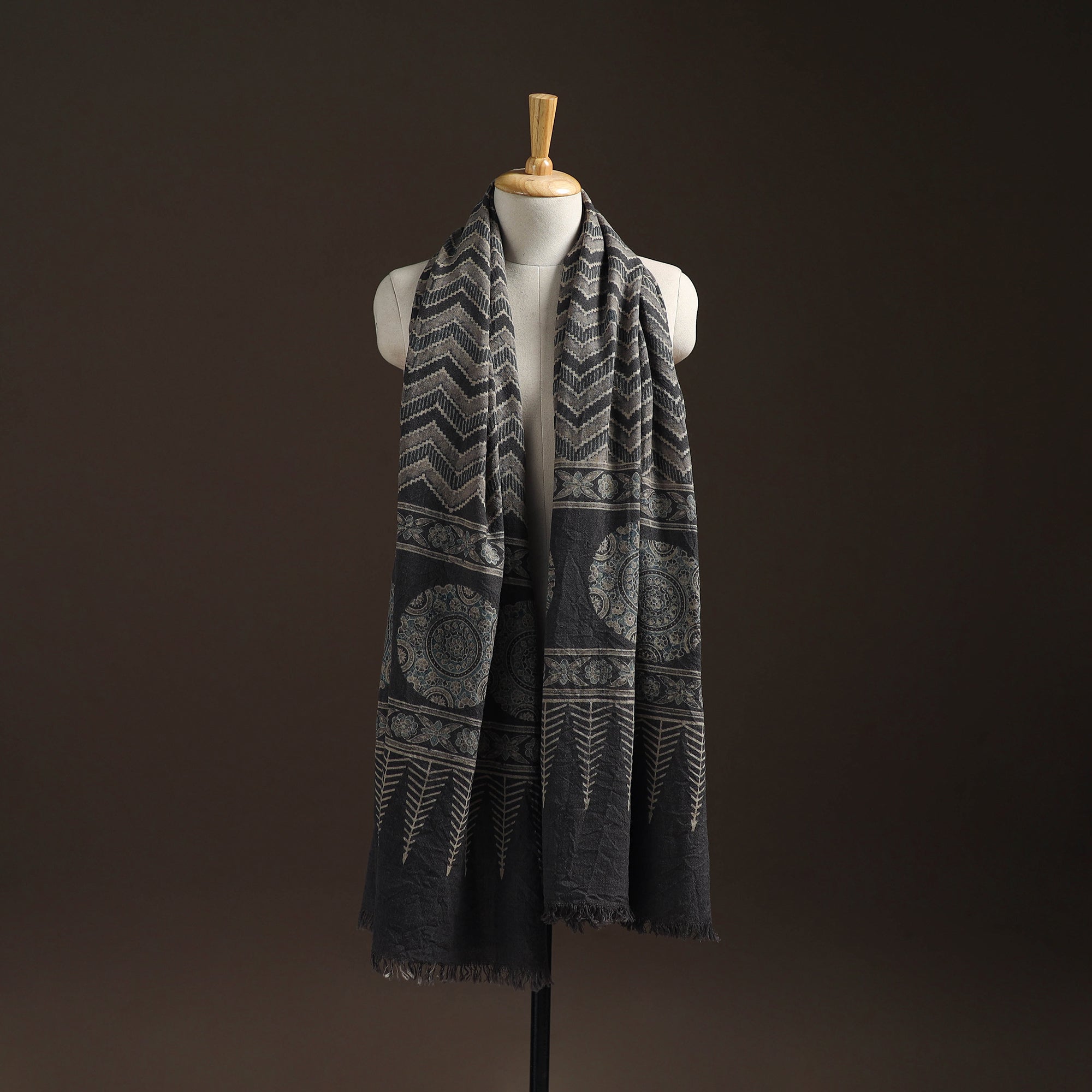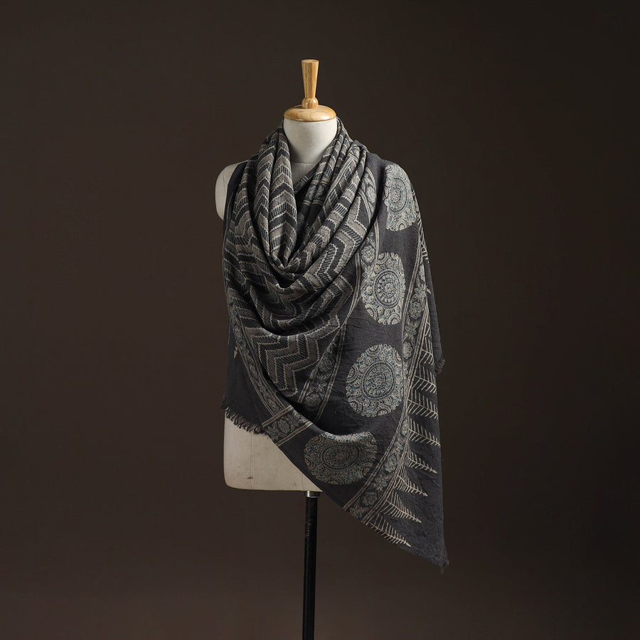 Ajrakh traditional hand block print acrylic wool shawl is created using long-practiced dyeing and printing techniques from Kutch, Gujarat. Designed for the winter season, the wool offers consistent warmth while remaining comfortable for everyday wear. The intricate Ajrakh patterns bring a refined, understated elegance, making it a thoughtful choice for those who appreciate culturally rooted textiles in their winter wardrobe.