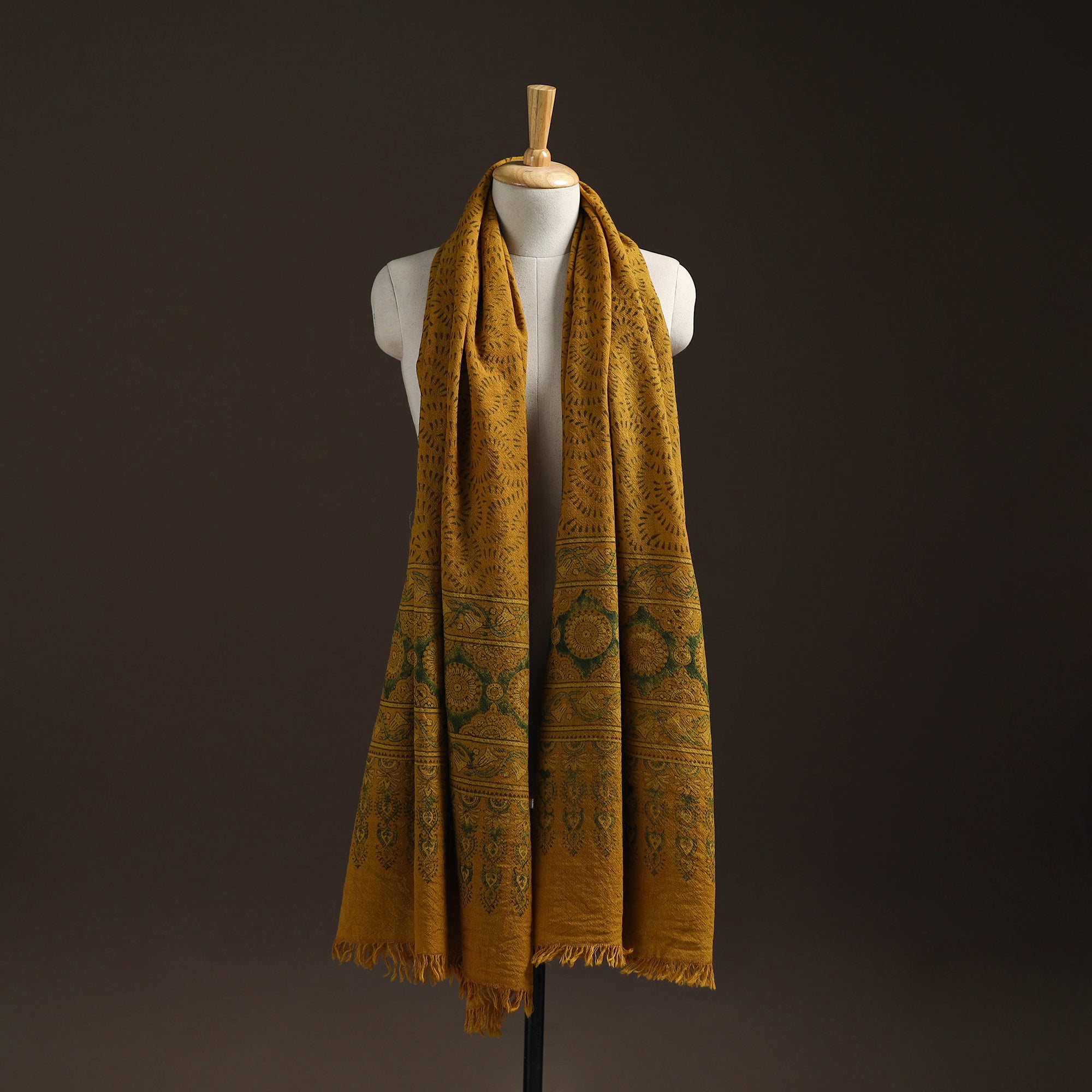 Ajrakh traditional hand block print acrylic wool shawl is created using long-practiced dyeing and printing techniques from Kutch, Gujarat. Designed for the winter season, the wool offers consistent warmth while remaining comfortable for everyday wear. The intricate Ajrakh patterns bring a refined, understated elegance, making it a thoughtful choice for those who appreciate culturally rooted textiles in their winter wardrobe.