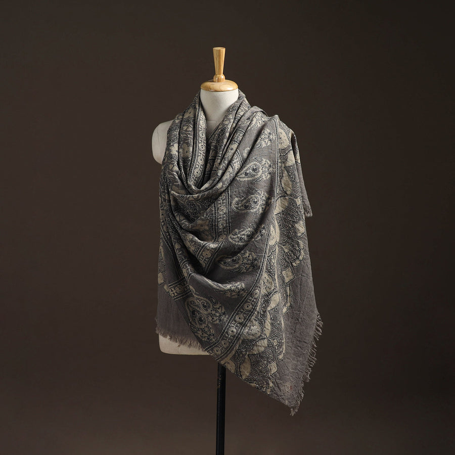 Ajrakh traditional hand block print acrylic wool shawl is created using long-practiced dyeing and printing techniques from Kutch, Gujarat. Designed for the winter season, the wool offers consistent warmth while remaining comfortable for everyday wear. The intricate Ajrakh patterns bring a refined, understated elegance, making it a thoughtful choice for those who appreciate culturally rooted textiles in their winter wardrobe.