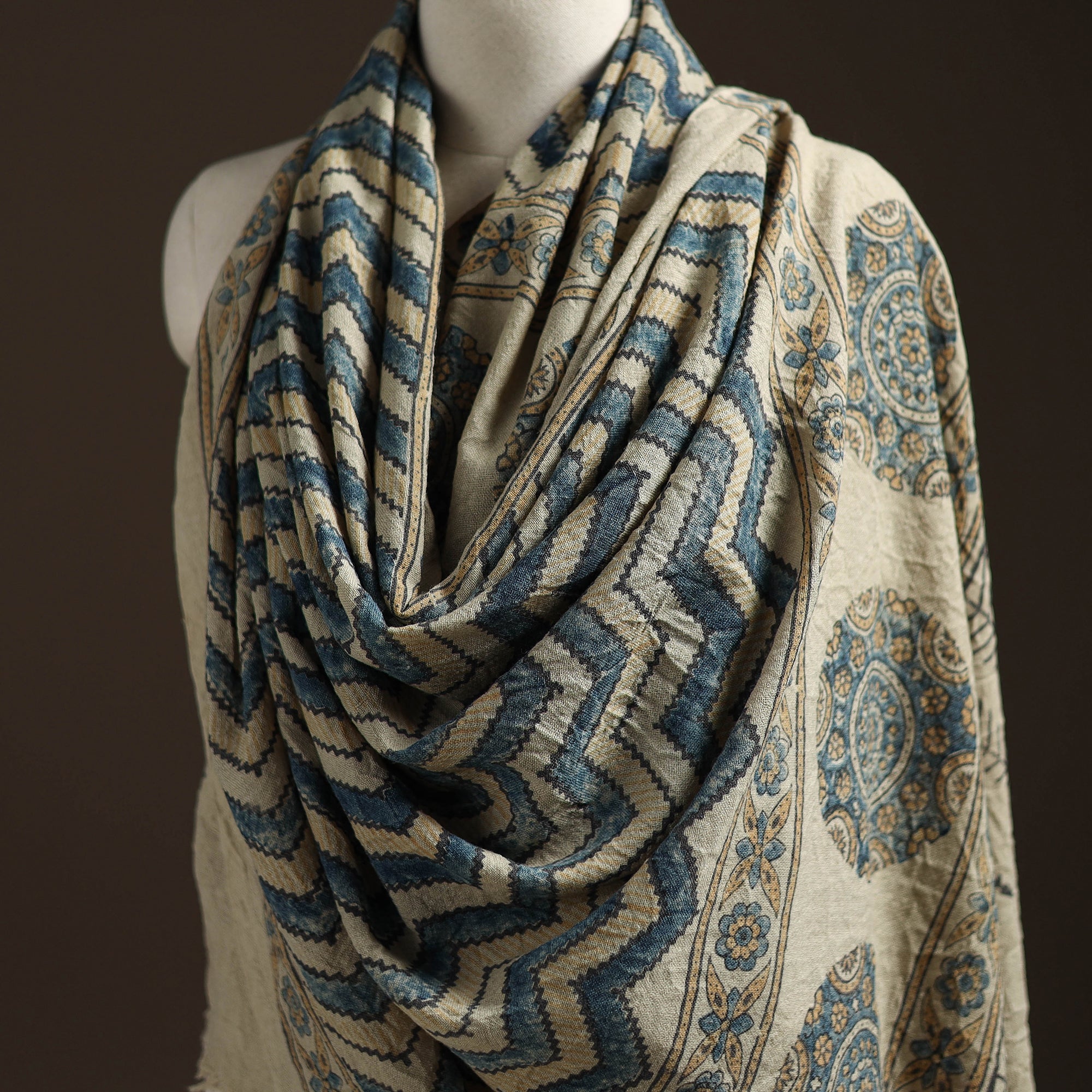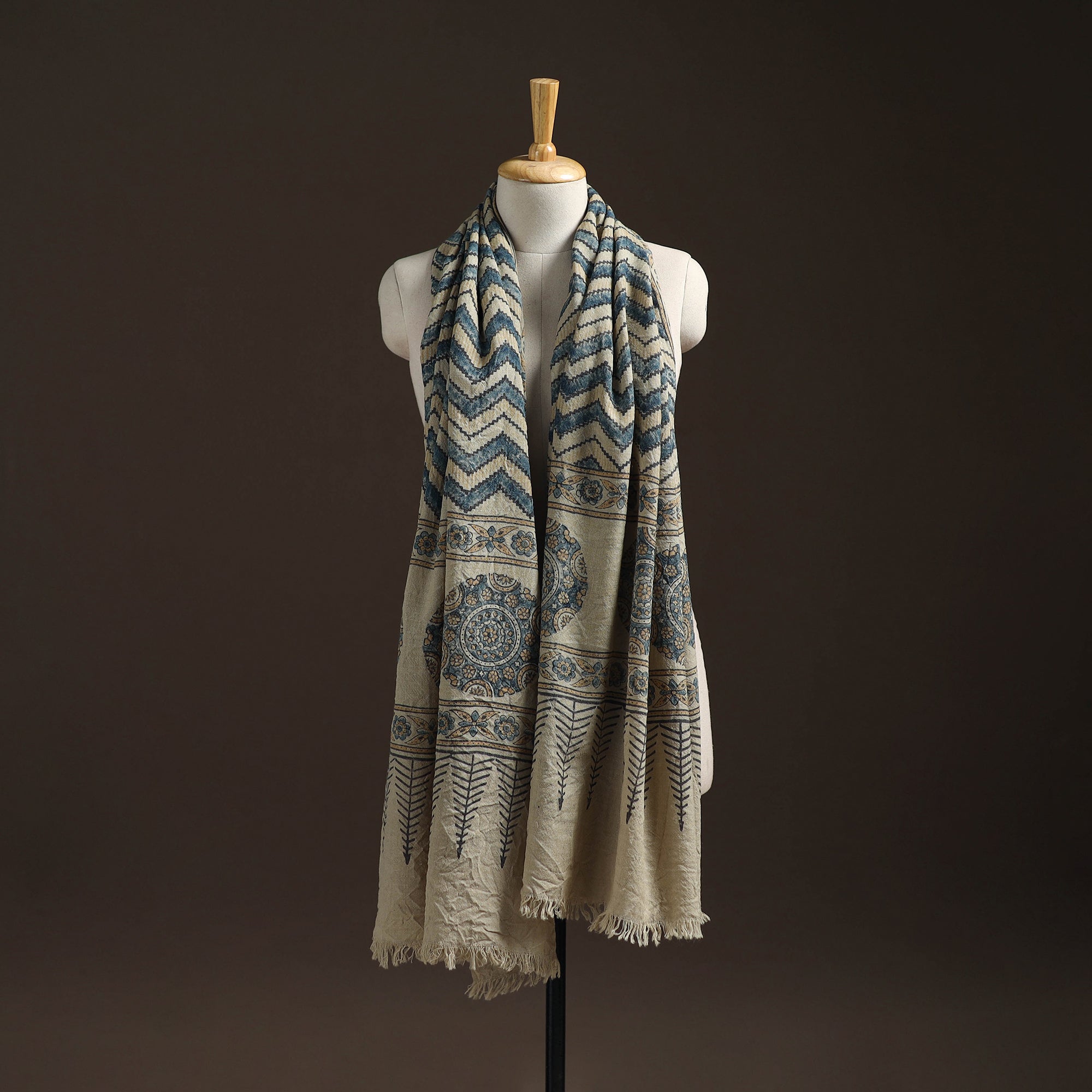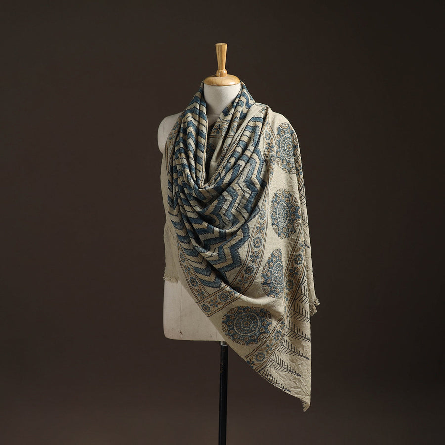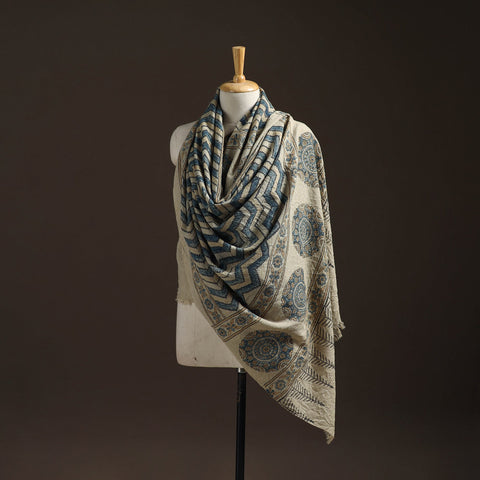 Ajrakh traditional hand block print acrylic wool shawl is created using long-practiced dyeing and printing techniques from Kutch, Gujarat. Designed for the winter season, the wool offers consistent warmth while remaining comfortable for everyday wear. The intricate Ajrakh patterns bring a refined, understated elegance, making it a thoughtful choice for those who appreciate culturally rooted textiles in their winter wardrobe.