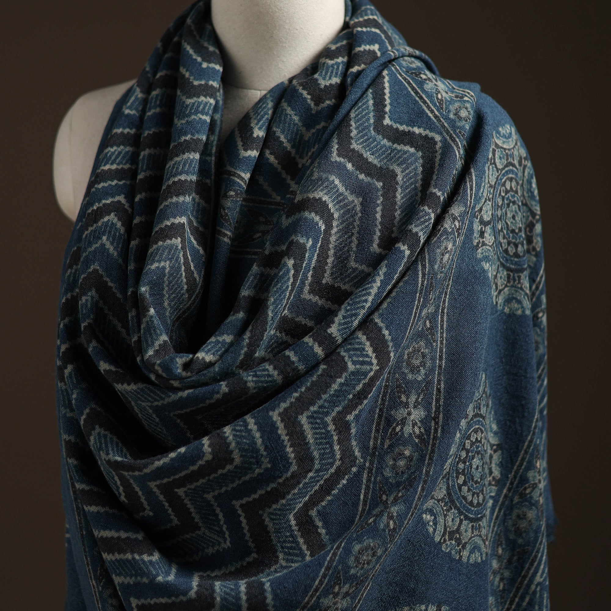 Ajrakh Hand Block Print Natural Dyed Handwoven Acrylic Wool Shawl 27