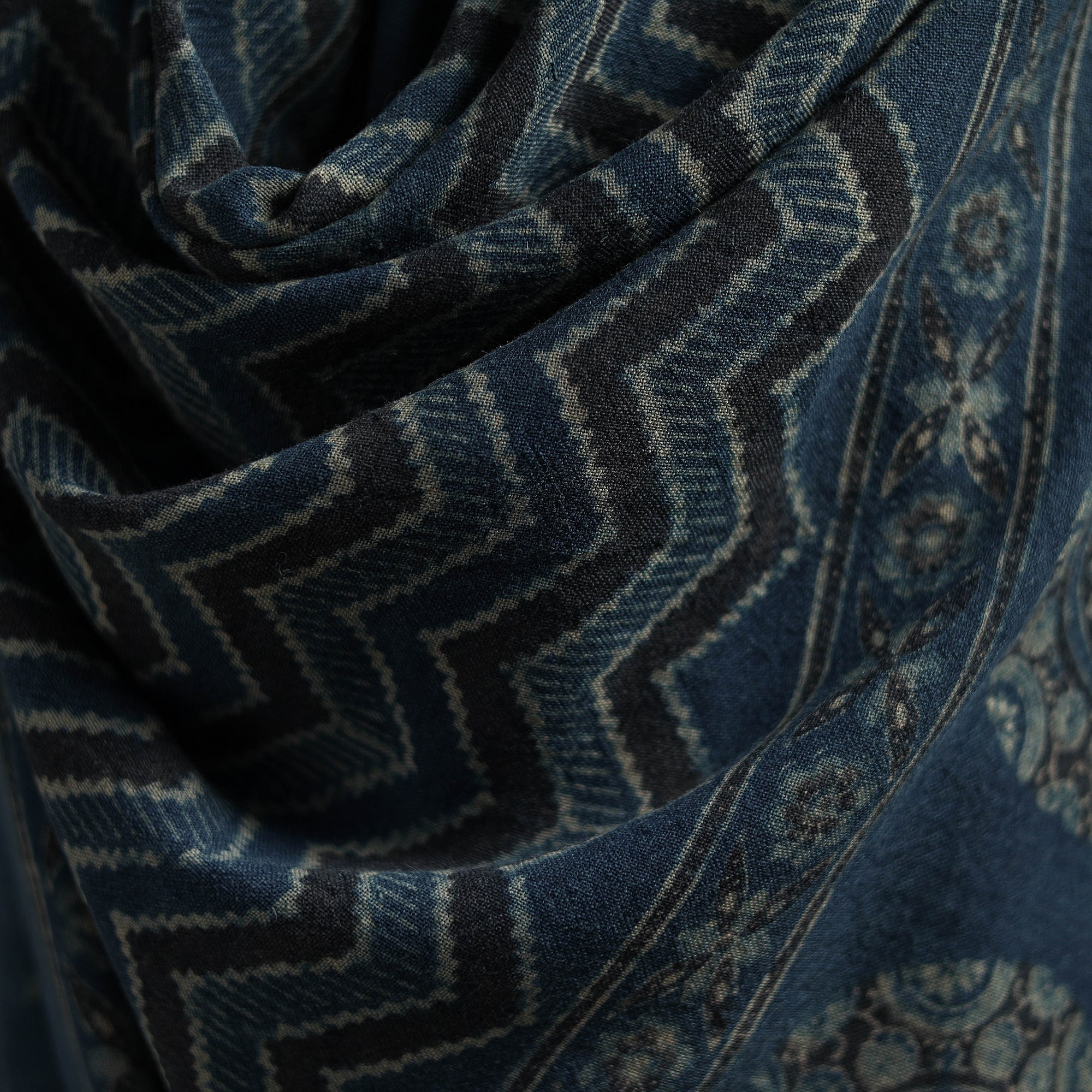 Ajrakh traditional hand block print acrylic wool shawl is created using long-practiced dyeing and printing techniques from Kutch, Gujarat. Designed for the winter season, the wool offers consistent warmth while remaining comfortable for everyday wear. The intricate Ajrakh patterns bring a refined, understated elegance, making it a thoughtful choice for those who appreciate culturally rooted textiles in their winter wardrobe.
