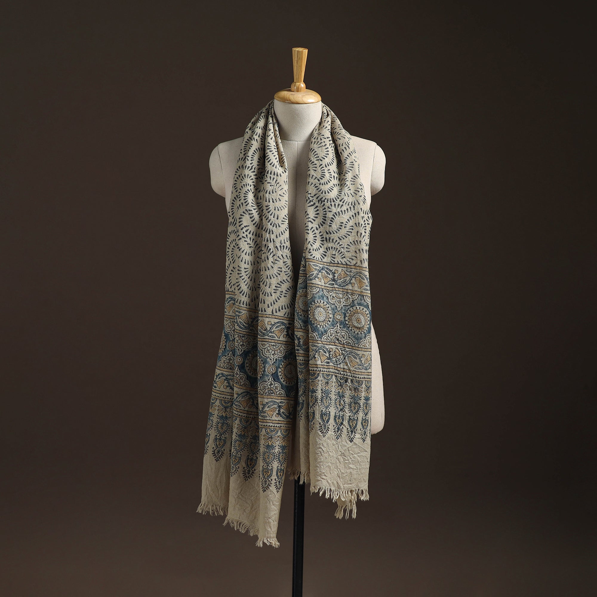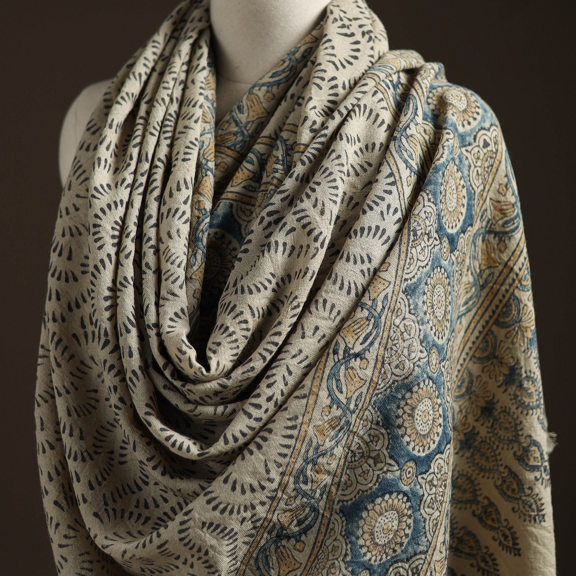 Ajrakh traditional hand block print acrylic wool shawl is created using long-practiced dyeing and printing techniques from Kutch, Gujarat. Designed for the winter season, the wool offers consistent warmth while remaining comfortable for everyday wear. The intricate Ajrakh patterns bring a refined, understated elegance, making it a thoughtful choice for those who appreciate culturally rooted textiles in their winter wardrobe.