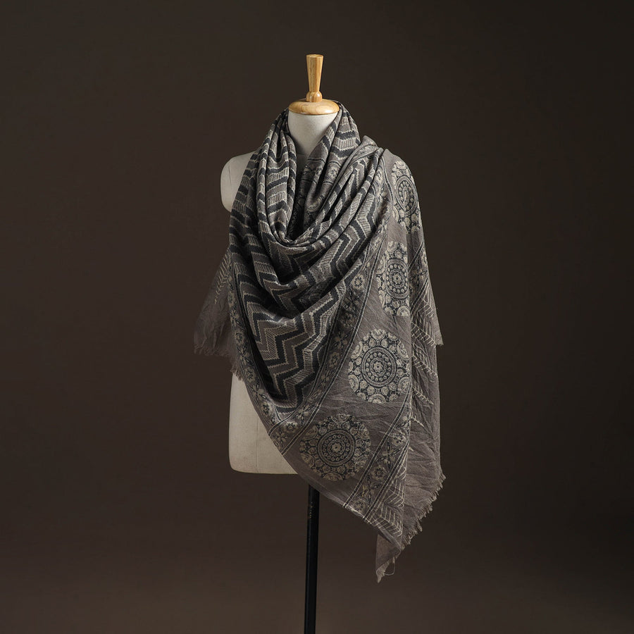 Ajrakh traditional hand block print acrylic wool shawl is created using long-practiced dyeing and printing techniques from Kutch, Gujarat. Designed for the winter season, the wool offers consistent warmth while remaining comfortable for everyday wear. The intricate Ajrakh patterns bring a refined, understated elegance, making it a thoughtful choice for those who appreciate culturally rooted textiles in their winter wardrobe.