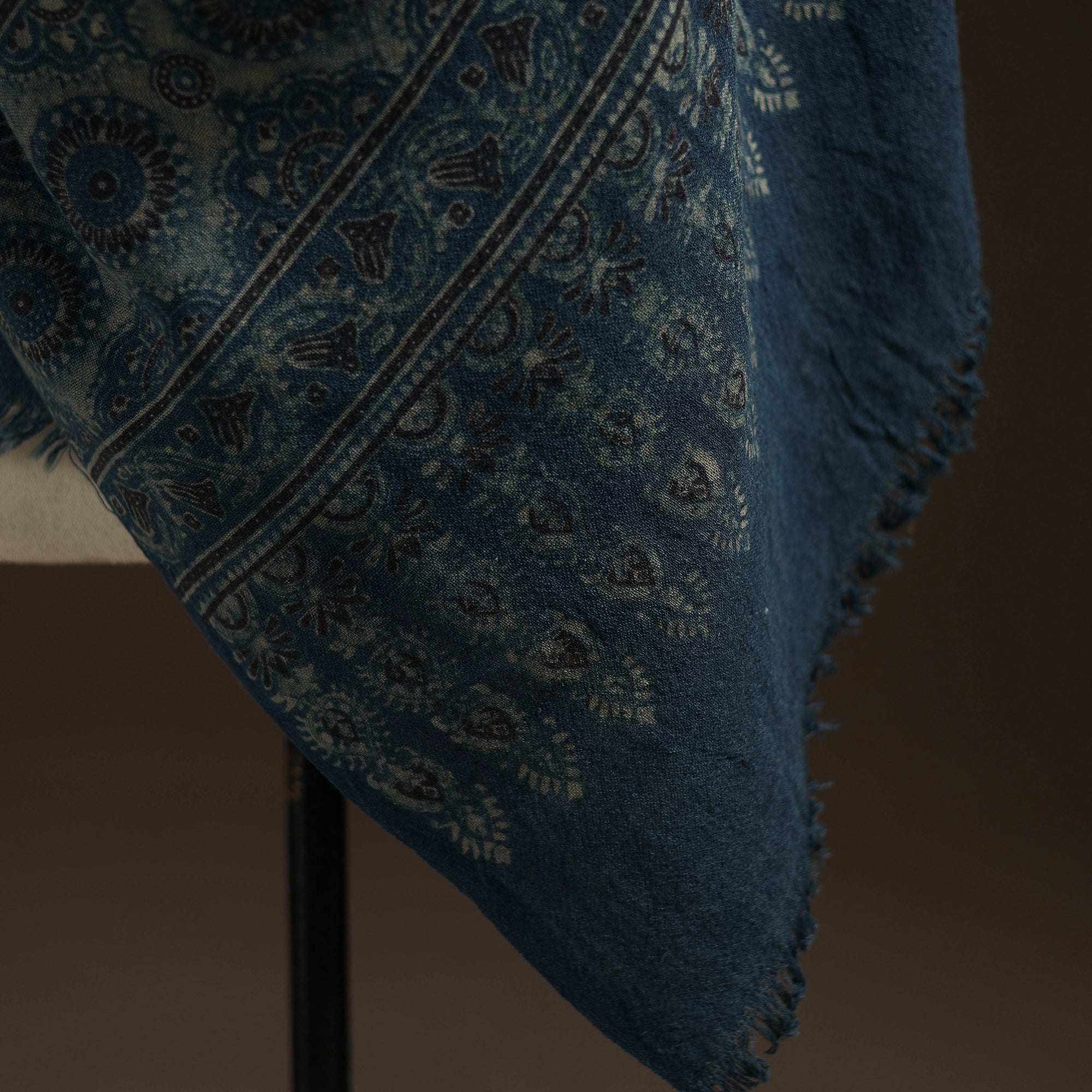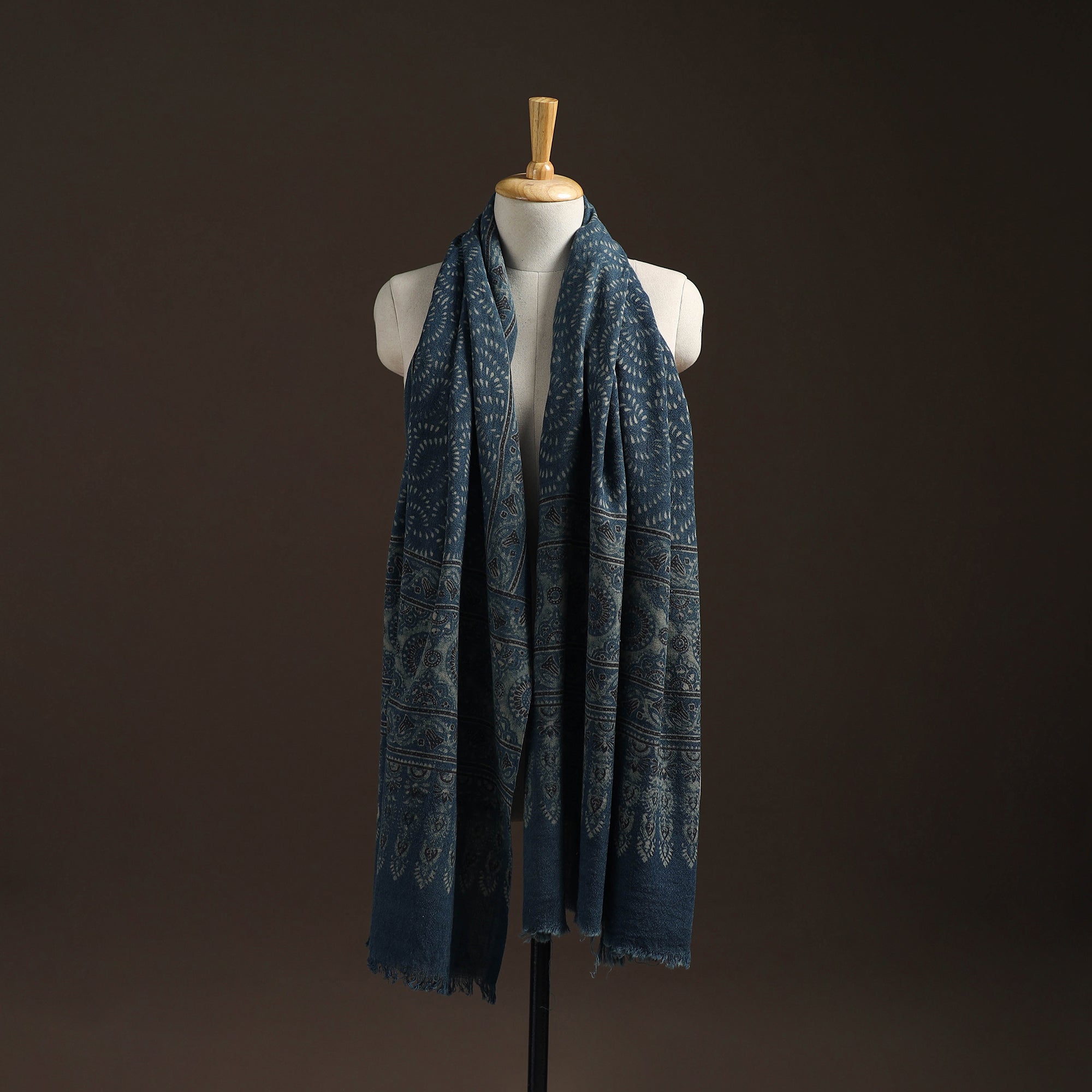 Ajrakh traditional hand block print acrylic wool shawl is created using long-practiced dyeing and printing techniques from Kutch, Gujarat. Designed for the winter season, the wool offers consistent warmth while remaining comfortable for everyday wear. The intricate Ajrakh patterns bring a refined, understated elegance, making it a thoughtful choice for those who appreciate culturally rooted textiles in their winter wardrobe.