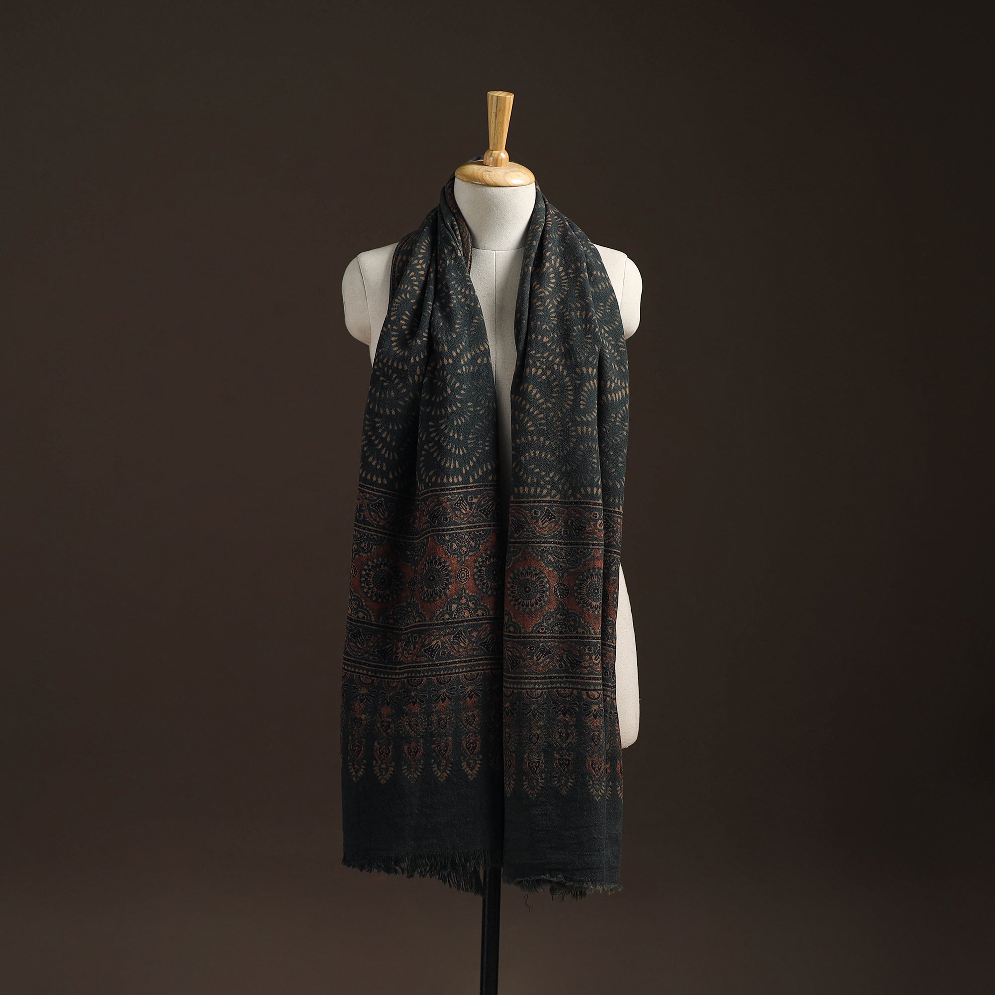 Ajrakh traditional hand block print acrylic wool shawl is created using long-practiced dyeing and printing techniques from Kutch, Gujarat. Designed for the winter season, the wool offers consistent warmth while remaining comfortable for everyday wear. The intricate Ajrakh patterns bring a refined, understated elegance, making it a thoughtful choice for those who appreciate culturally rooted textiles in their winter wardrobe.