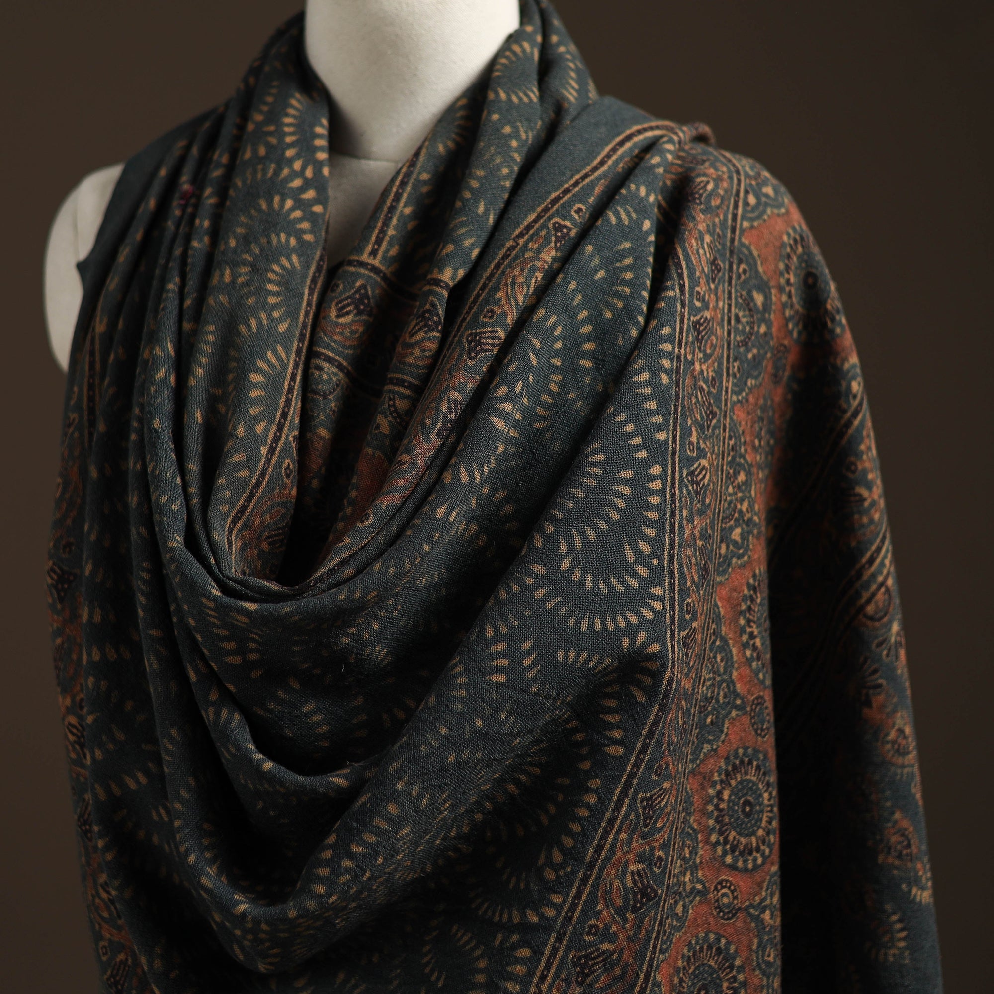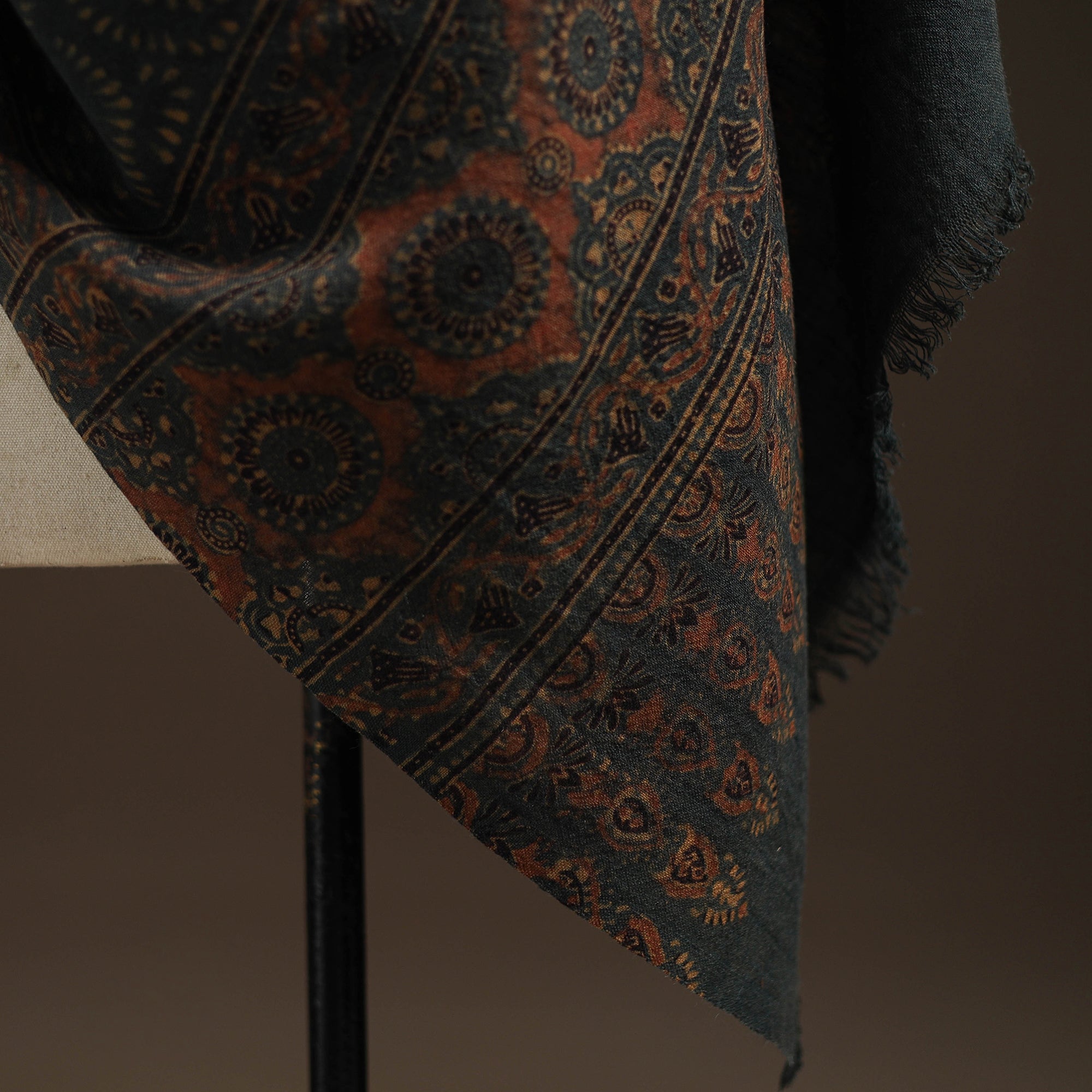 Ajrakh Hand Block Print Natural Dyed Handwoven Acrylic Wool Shawl 46