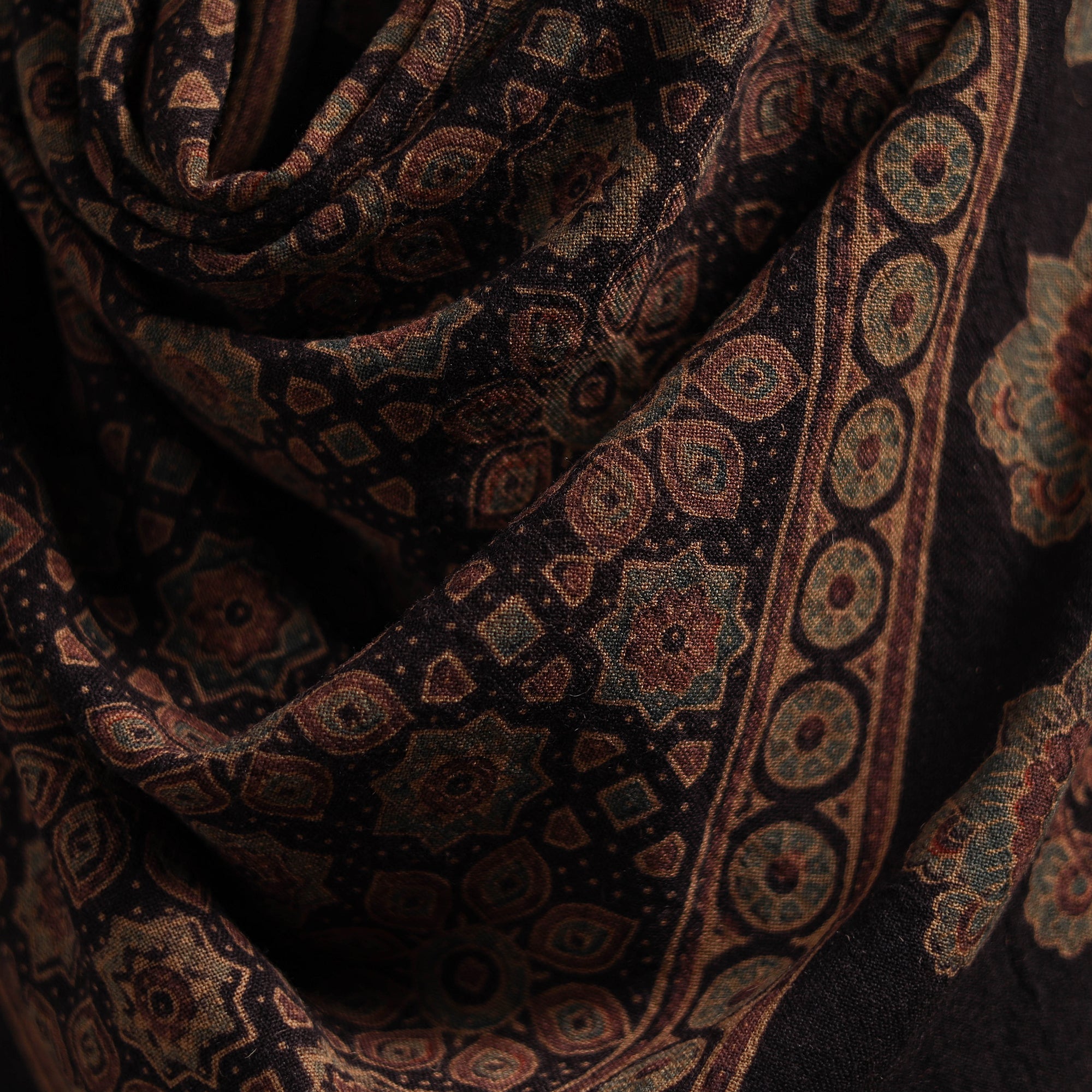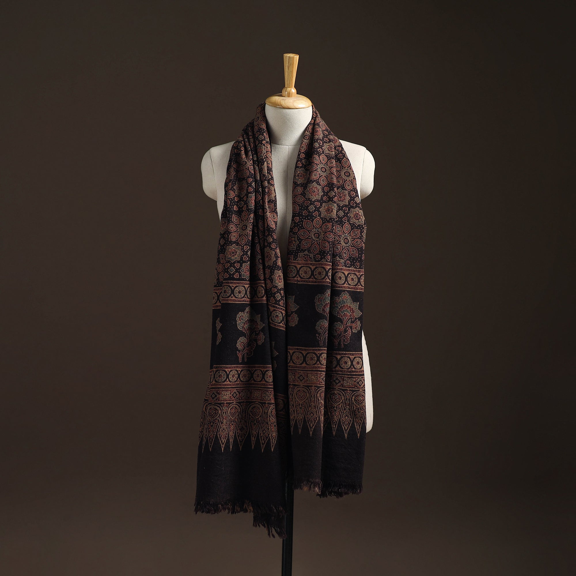 Ajrakh traditional hand block print acrylic wool shawl is created using long-practiced dyeing and printing techniques from Kutch, Gujarat. Designed for the winter season, the wool offers consistent warmth while remaining comfortable for everyday wear. The intricate Ajrakh patterns bring a refined, understated elegance, making it a thoughtful choice for those who appreciate culturally rooted textiles in their winter wardrobe.