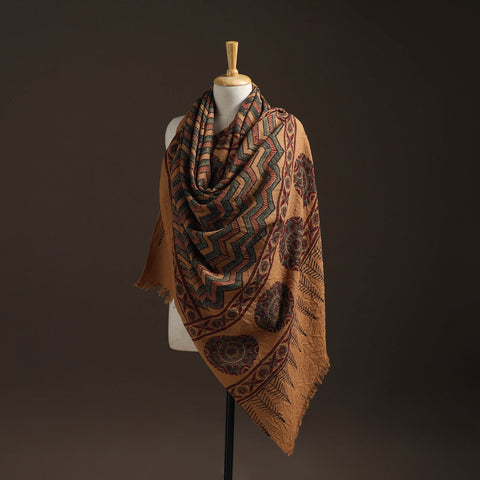 Ajrakh traditional hand block print acrylic wool shawl is created using long-practiced dyeing and printing techniques from Kutch, Gujarat. Designed for the winter season, the wool offers consistent warmth while remaining comfortable for everyday wear. The intricate Ajrakh patterns bring a refined, understated elegance, making it a thoughtful choice for those who appreciate culturally rooted textiles in their winter wardrobe.