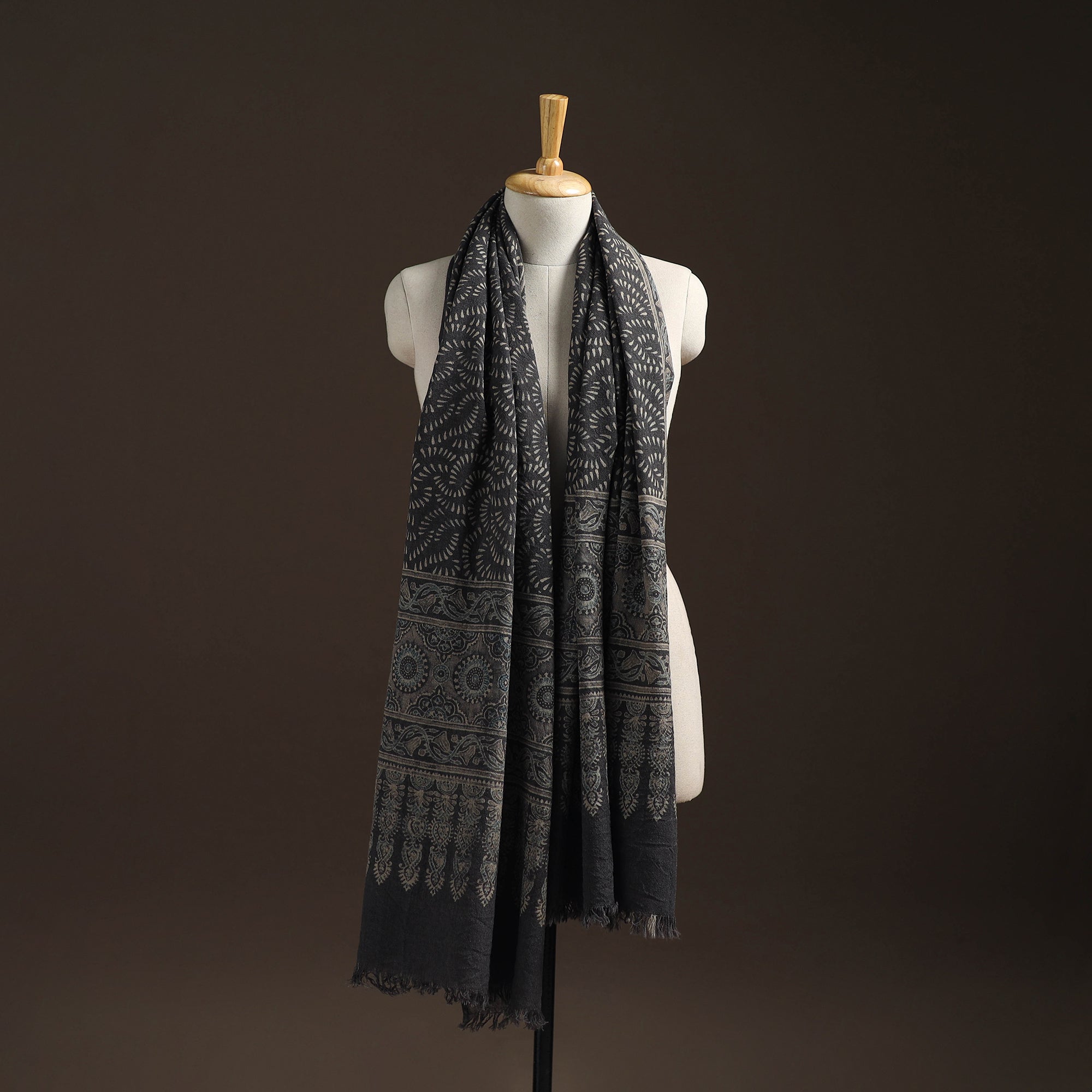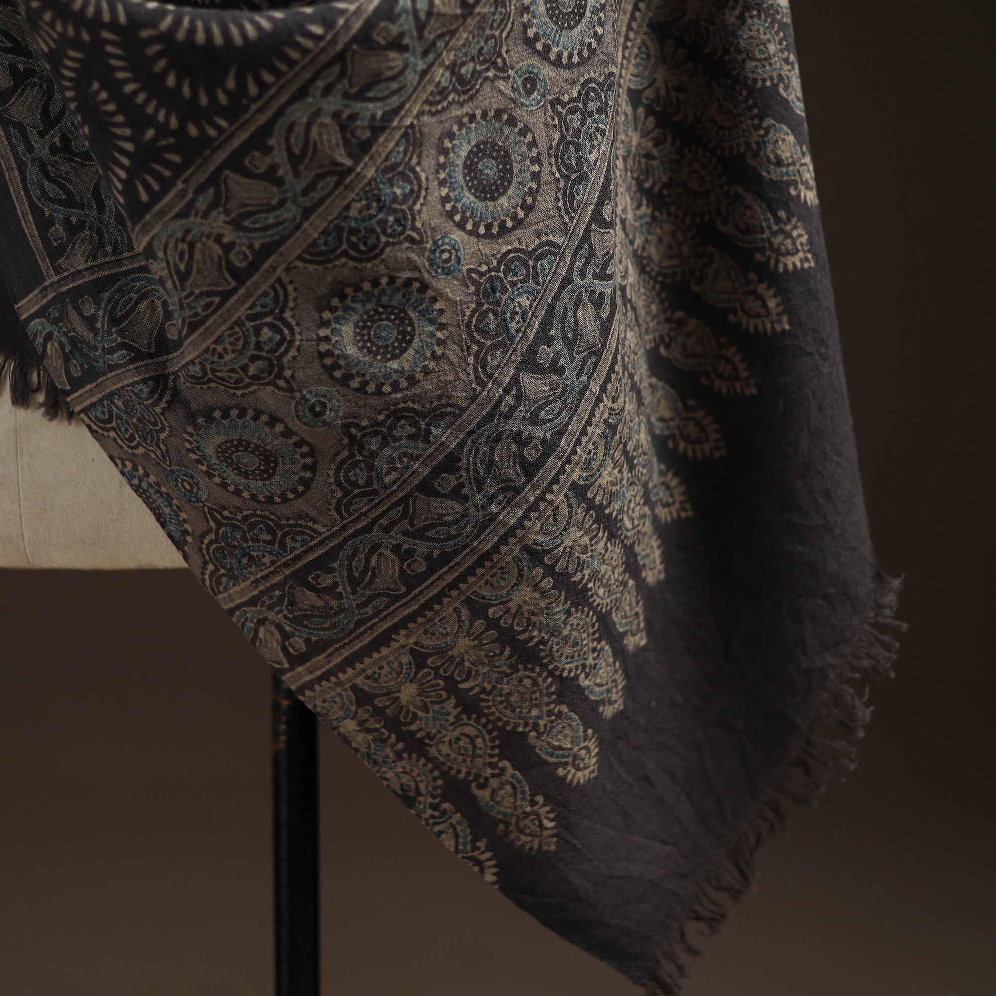 Ajrakh traditional hand block print acrylic wool shawl is created using long-practiced dyeing and printing techniques from Kutch, Gujarat. Designed for the winter season, the wool offers consistent warmth while remaining comfortable for everyday wear. The intricate Ajrakh patterns bring a refined, understated elegance, making it a thoughtful choice for those who appreciate culturally rooted textiles in their winter wardrobe.