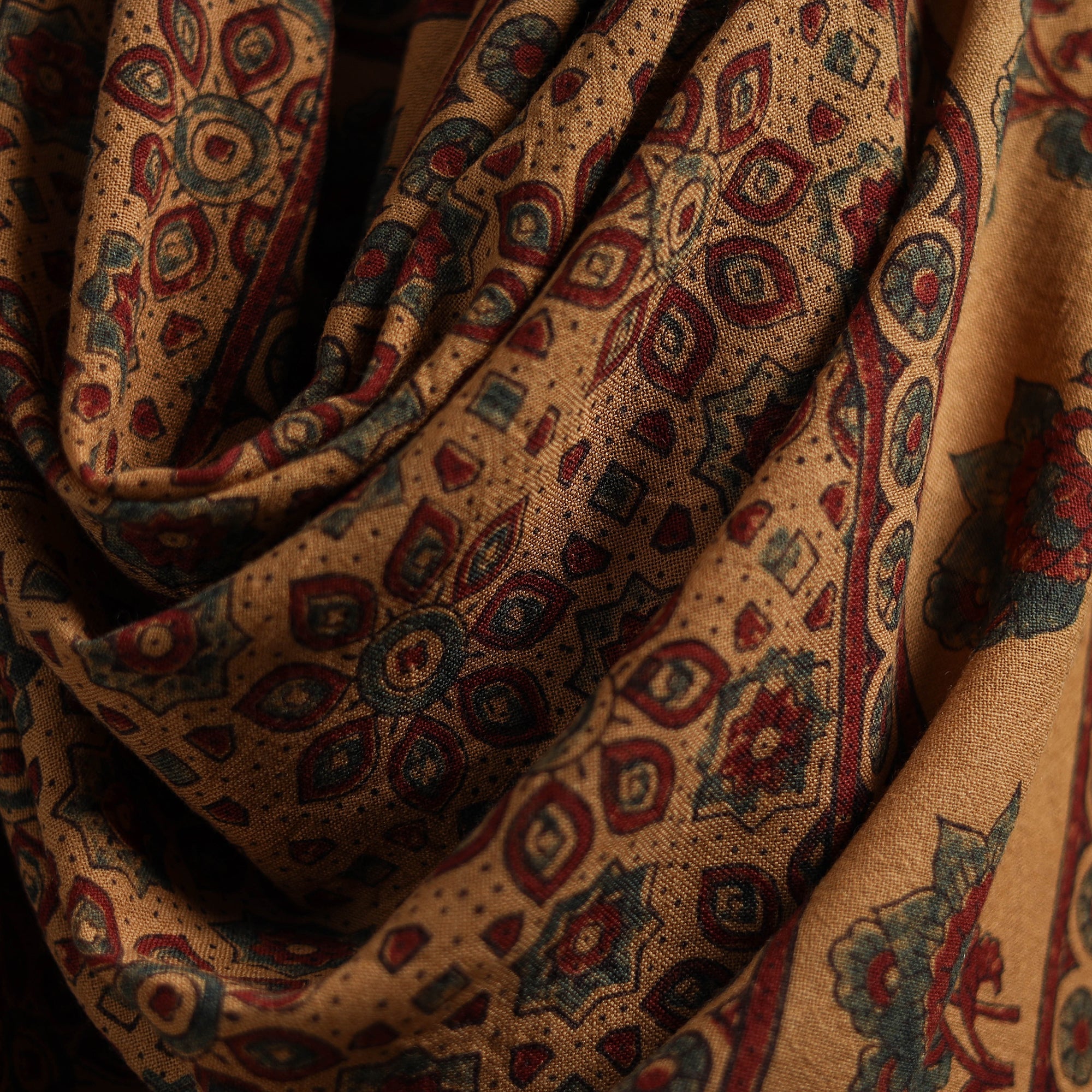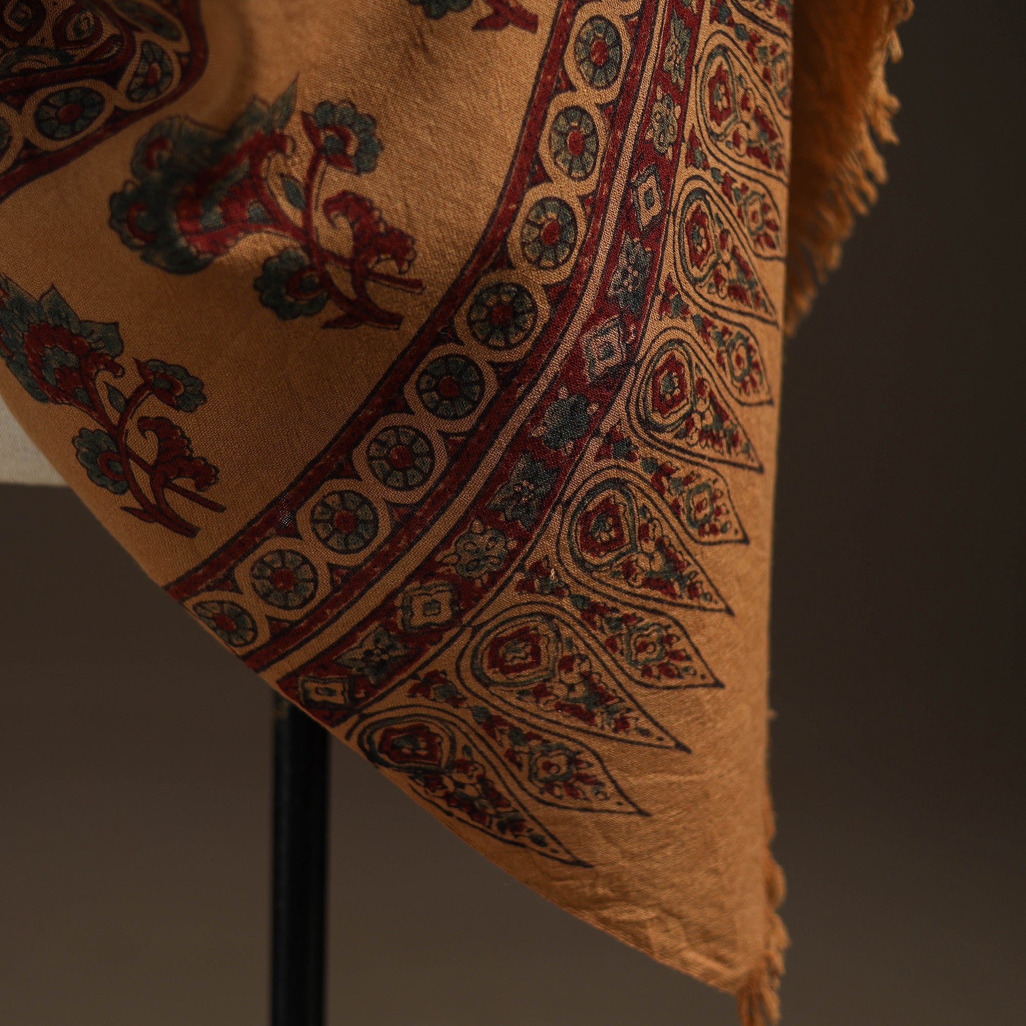 Ajrakh traditional hand block print acrylic wool shawl is created using long-practiced dyeing and printing techniques from Kutch, Gujarat. Designed for the winter season, the wool offers consistent warmth while remaining comfortable for everyday wear. The intricate Ajrakh patterns bring a refined, understated elegance, making it a thoughtful choice for those who appreciate culturally rooted textiles in their winter wardrobe.