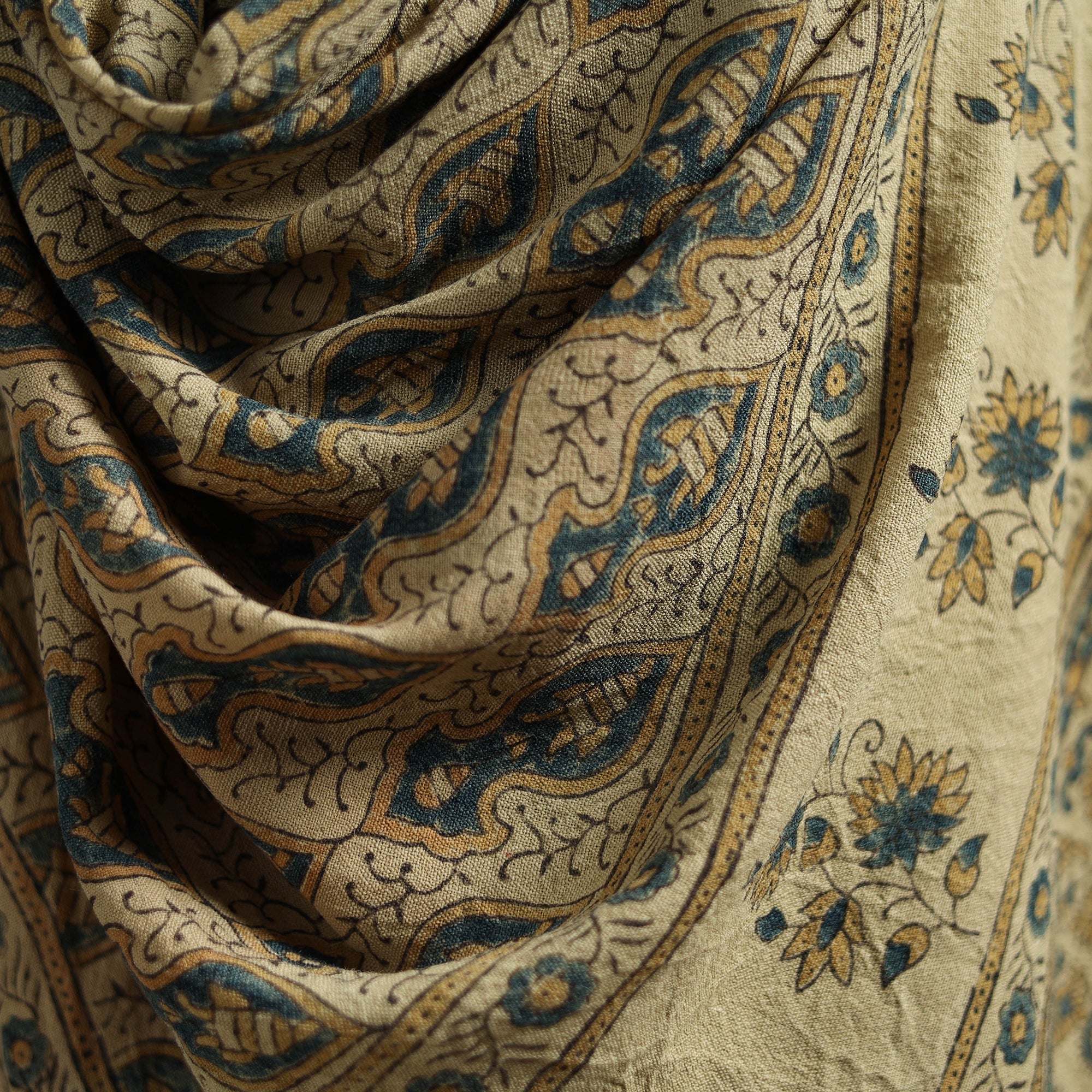 Ajrakh is a well-known traditional vegetable dyeing that resists block-printing techniques on cloth. Originated in Kutch, It is nearly around 4,500 years old practised by Khatri community of Kutch and Sikh.