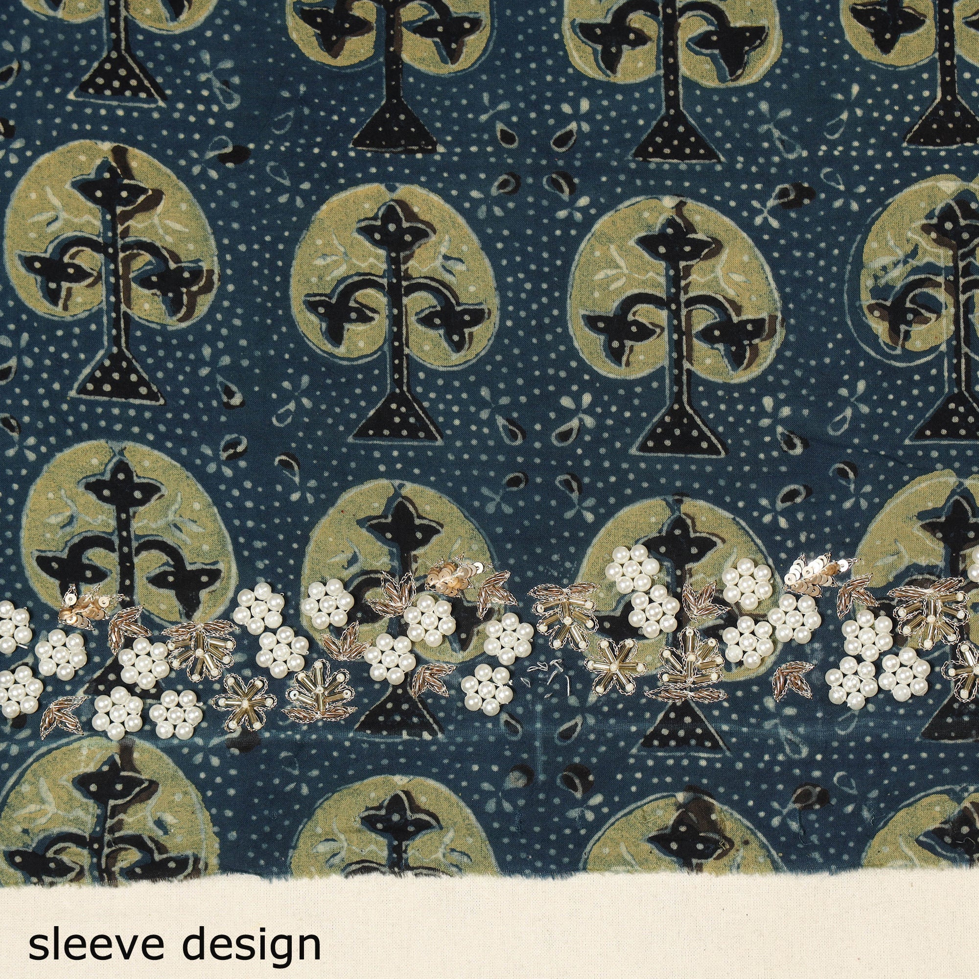 • Blue - hand embroidery cotton blouse piece 04 - handcrafted