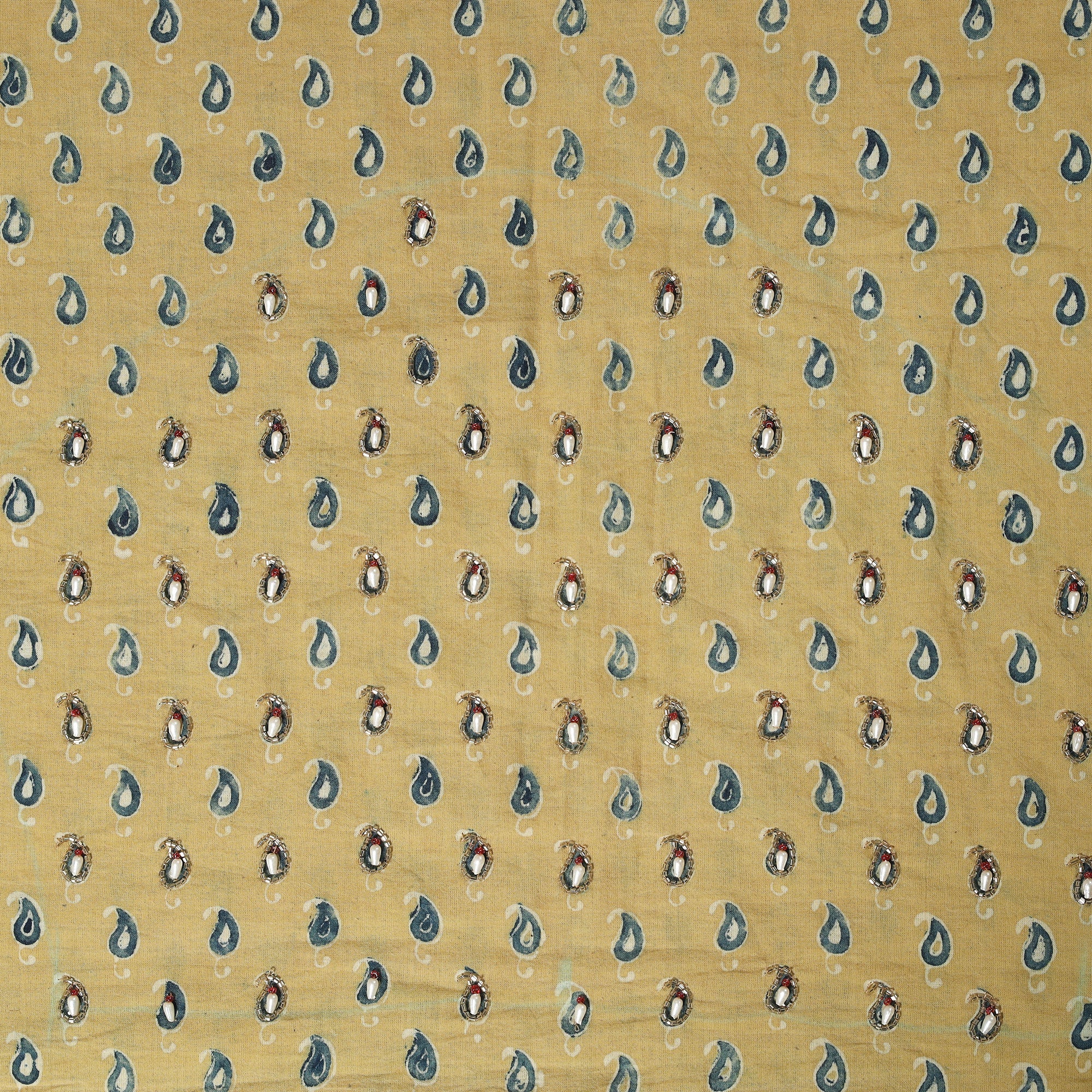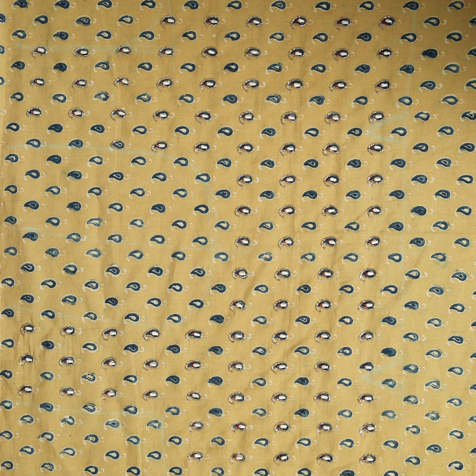 This handcrafted yellow blouse piece showcases detailed hand embroidery on ajrakh block-printed cotton fabric, blending traditional artistry with everyday comfort. Perfect for saree pairings, it can be tailored into stylish blouses suited for both casual and festive wear.