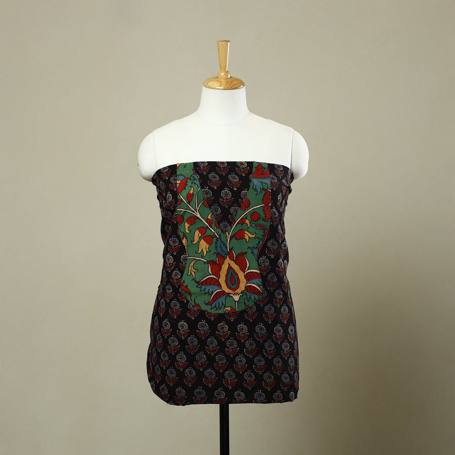 Step into the world of heritage fashion with this black ajrakh patchwork kurta material. Featuring intricate traditional prints, each piece is a tribute to skilled craftsmanship. Its soft cotton weave ensures elegance meets ease in every stitch.