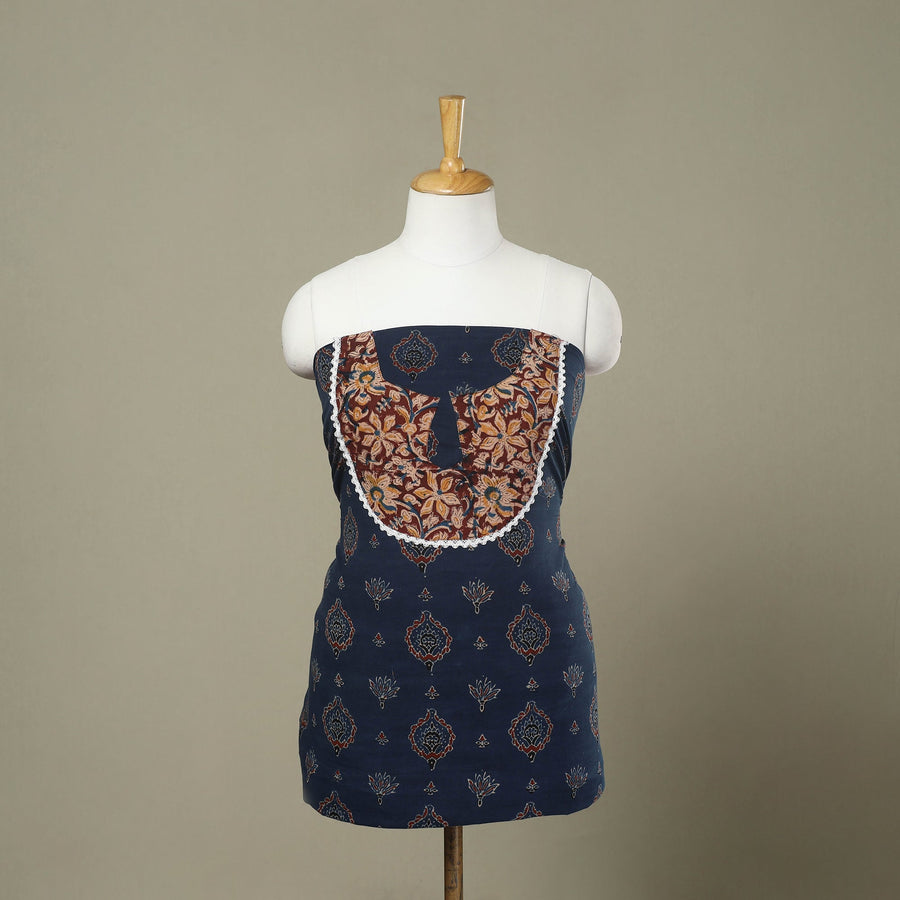 Add a touch of tradition to your wardrobe with this blue ajrakh print patchwork cotton kurta material. Crafted using the traditional block printing technique, it features intricate, vibrant patterns that showcase India's rich artistic heritage. Made from soft, breathable cotton, this fabric is perfect for creating custom kurtas that combine comfort, style, and cultural elegance.