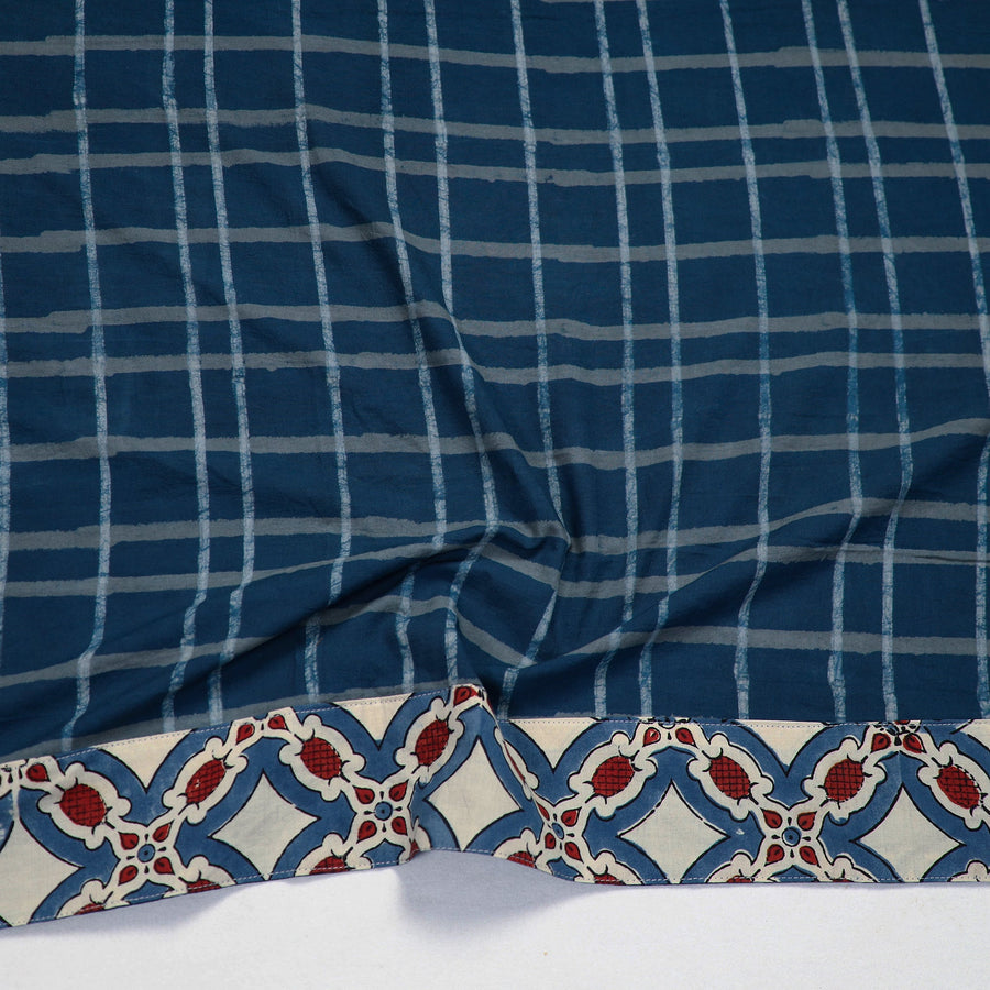 This blue akola block-printed cotton blouse piece combines traditional craftsmanship with modern design. Crafted from cotton fabrics, each piece features intricate block prints. This mix & match blouse material will go with all of your sarees & enhance your look.