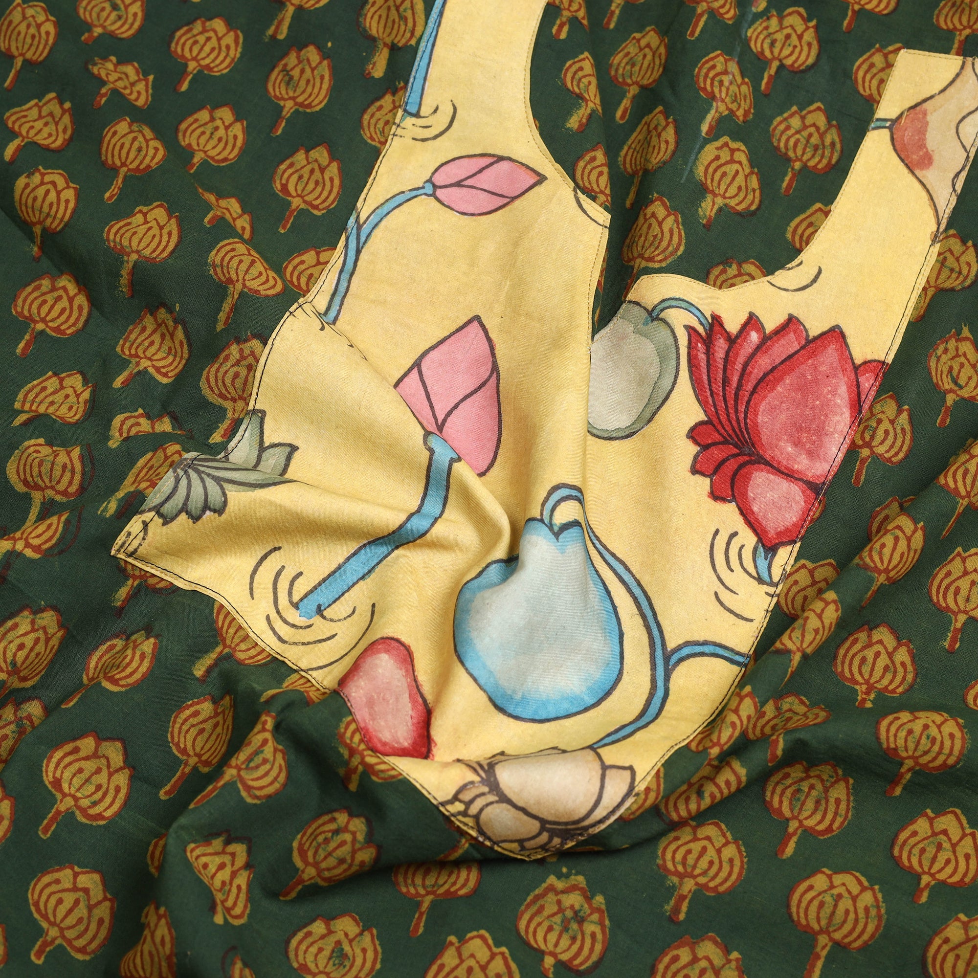 Let tradition meet trend with this beautifully crafted green akola print patchwork cotton kurta material. Showcasing a rich blend of block printed akola patterns, it’s perfect for designing personalized ethnic outfits that reflect your love for traditional crafts and aesthetics.