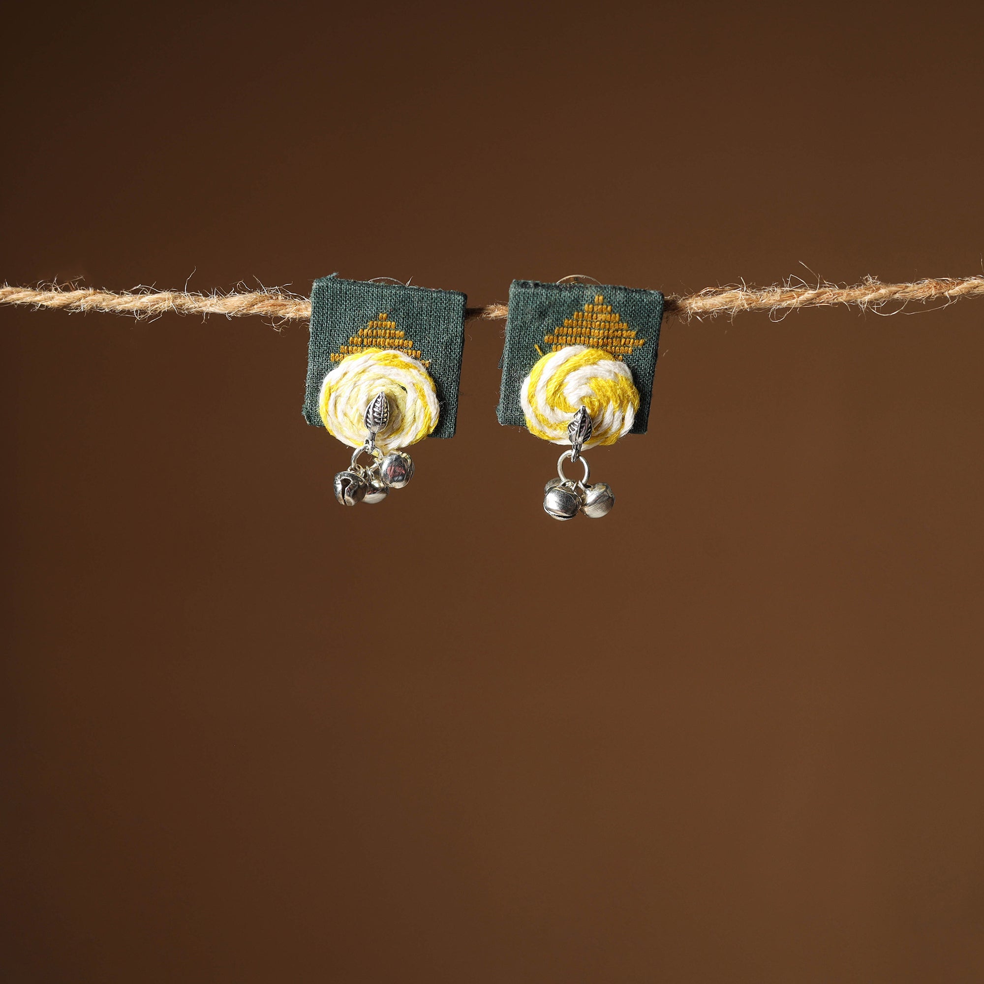 Elevate your style with our green handcrafted earrings. Intricately designed with fabric, german silver, and thread work, these earrings exude sophistication. Stylish and elegant, they effortlessly enhance any outfit with a perfect blend of tradition and contemporary charm.