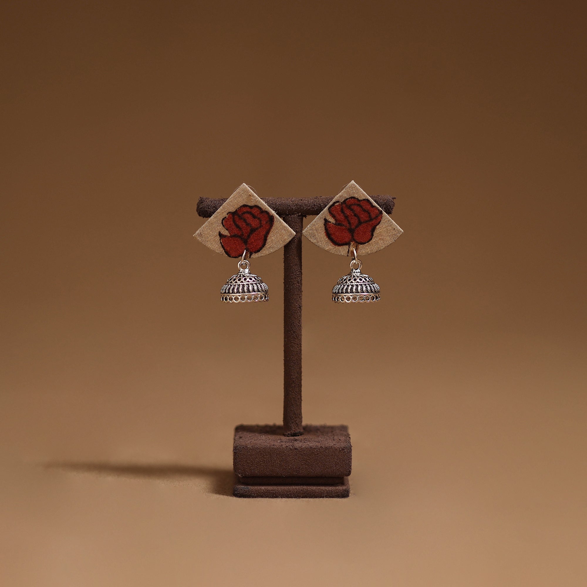 Handmade fabric earrings with german silver jhumki is attached at the end, that enhances its charm. Perfect for everyday wear or special occasions, these earrings blend traditional style with a graceful touch.
