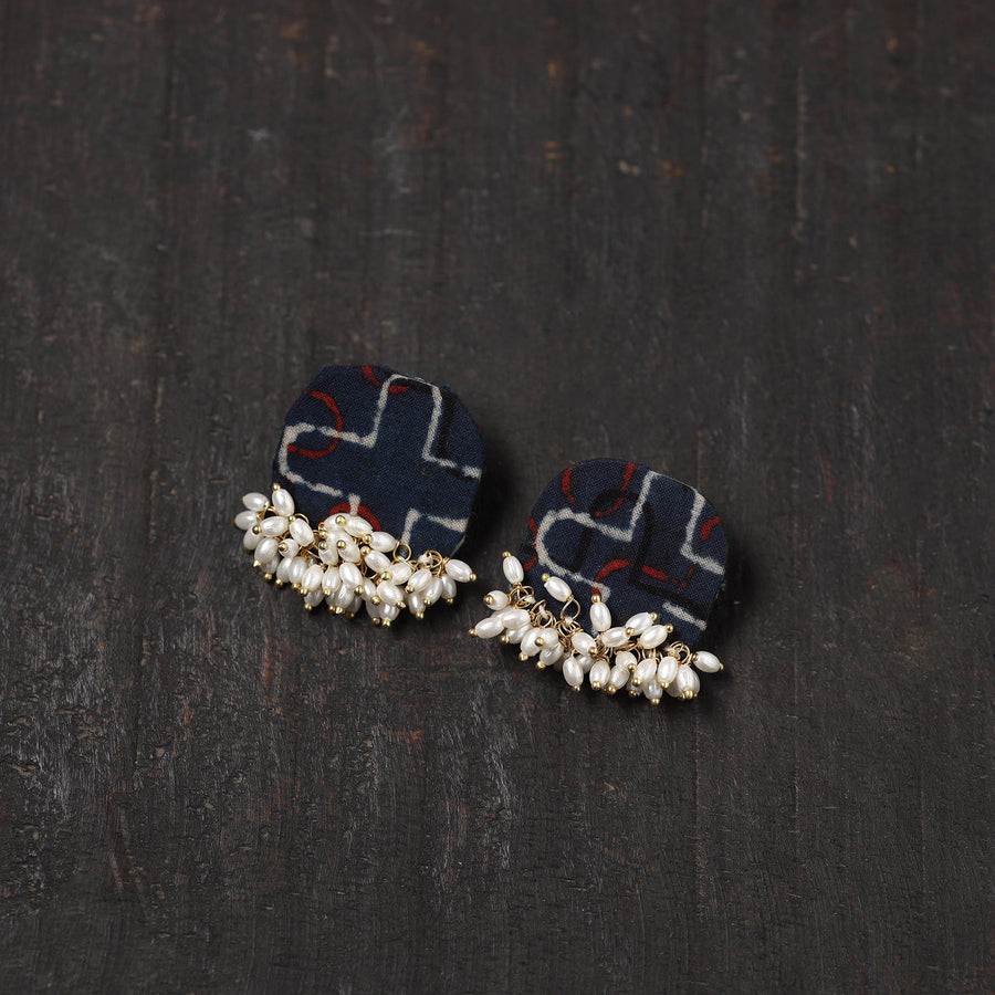 Add a touch of handcrafted charm to your ensemble with these blue fabart pearl earrings. Made by skilled artisans, each pair beautifully combines delicate pearl accents with a fabric based design. These earrings represent a perfect fusion of traditional aesthetics and modern flair ideal for festive occasions, everyday style, or thoughtful gifting.
