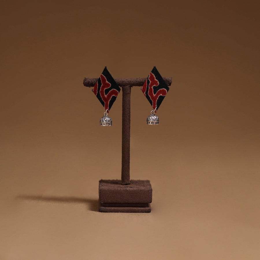 Handmade black fabric earrings with german silver jhumki is attached at the end, that enhances its charm. Perfect for everyday wear or special occasions, these earrings blend traditional style with a graceful touch.