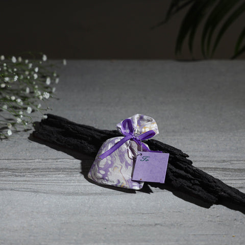 Perfumed sachet is made using fragrant herbs and essential oils, wrapped in 100% hand-marbled silk fabric. It can be used as a freshener and deodoriser without untying the ribbon.