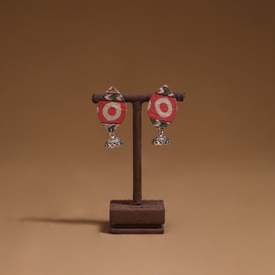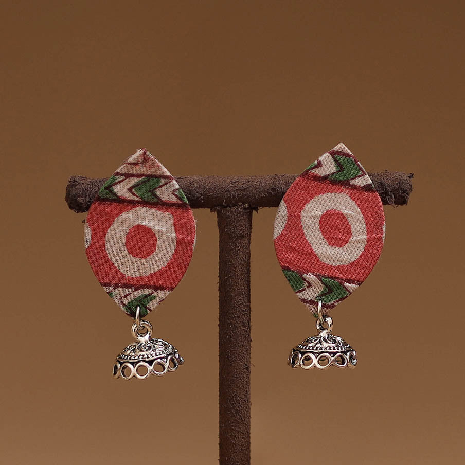Handmade fabric earrings with german silver jhumki is attached at the end, that enhances its charm. Perfect for everyday wear or special occasions, these earrings blend traditional style with a graceful touch.