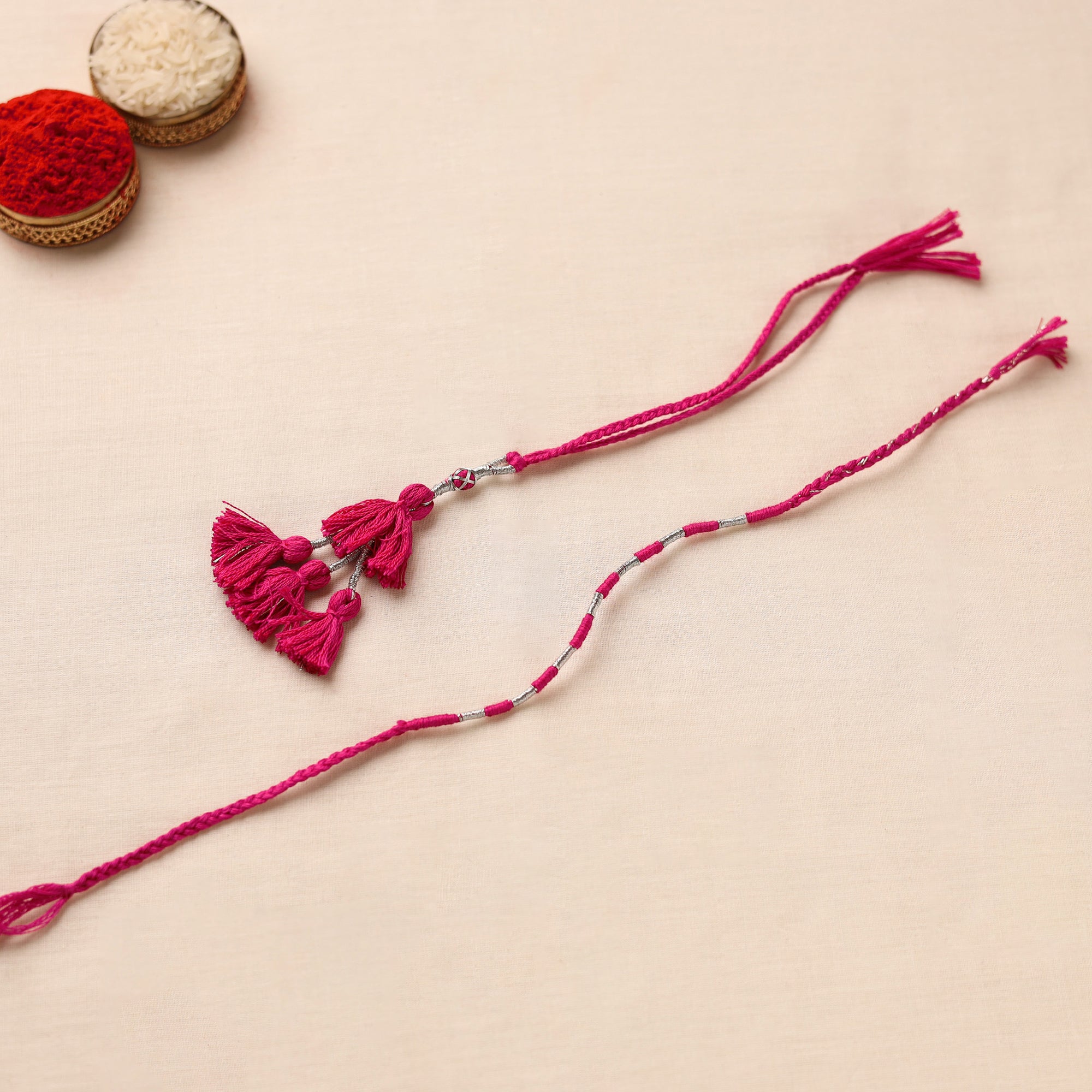 • Anant Raksha Thread work Rakhi & Lumba Set