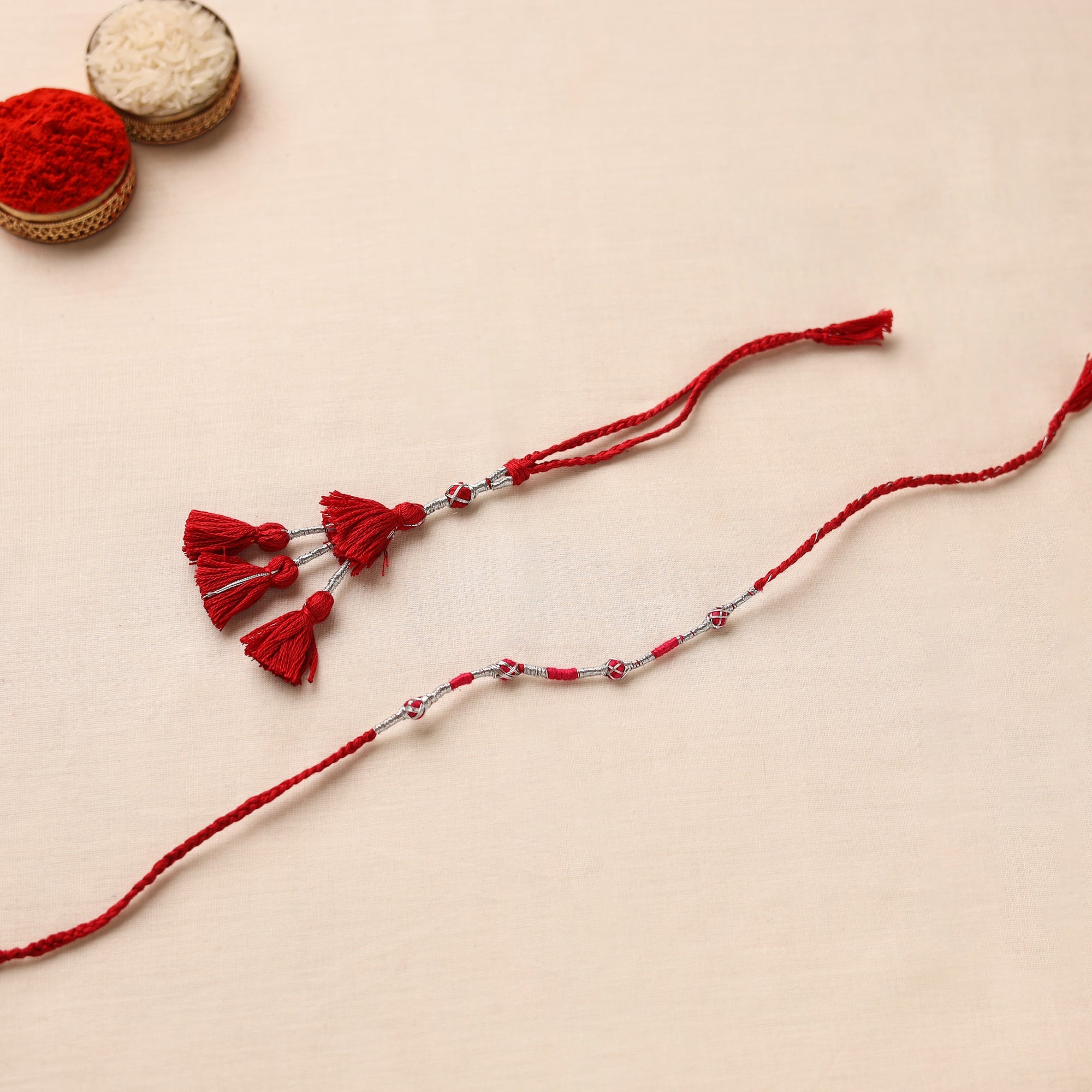 Celebrate Raksha Bandhan with this anant Raksha rakhi & lumba set, featuring intricate thread work rooted in age-old tradition. “Anant Raksha” symbolizes infinite protect, care, and the sacred promise shared between siblings. Handcrafted with vibrant threads and fine detailing, this set adds emotional depth and beauty to the occasion. A heartfelt tribute to sibling bonds, it brings timeless, personal charm to your festive celebrations.