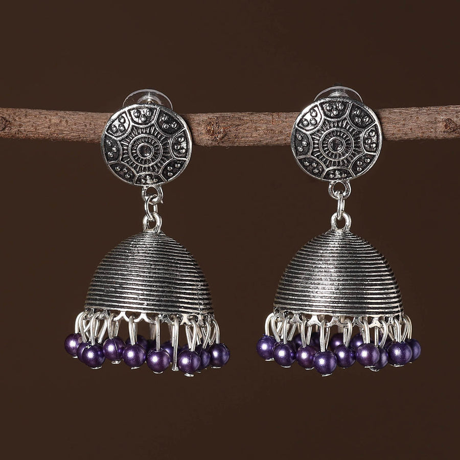 Add a touch of tradition and elegance to your look with our grey german silver beaded jhumki earrings for women. Crafted from oxidised german silver, these beautiful earrings feature intricate beadwork. Perfect for both casual outings and festive celebrations, they enhance any outfit with their unique charm.